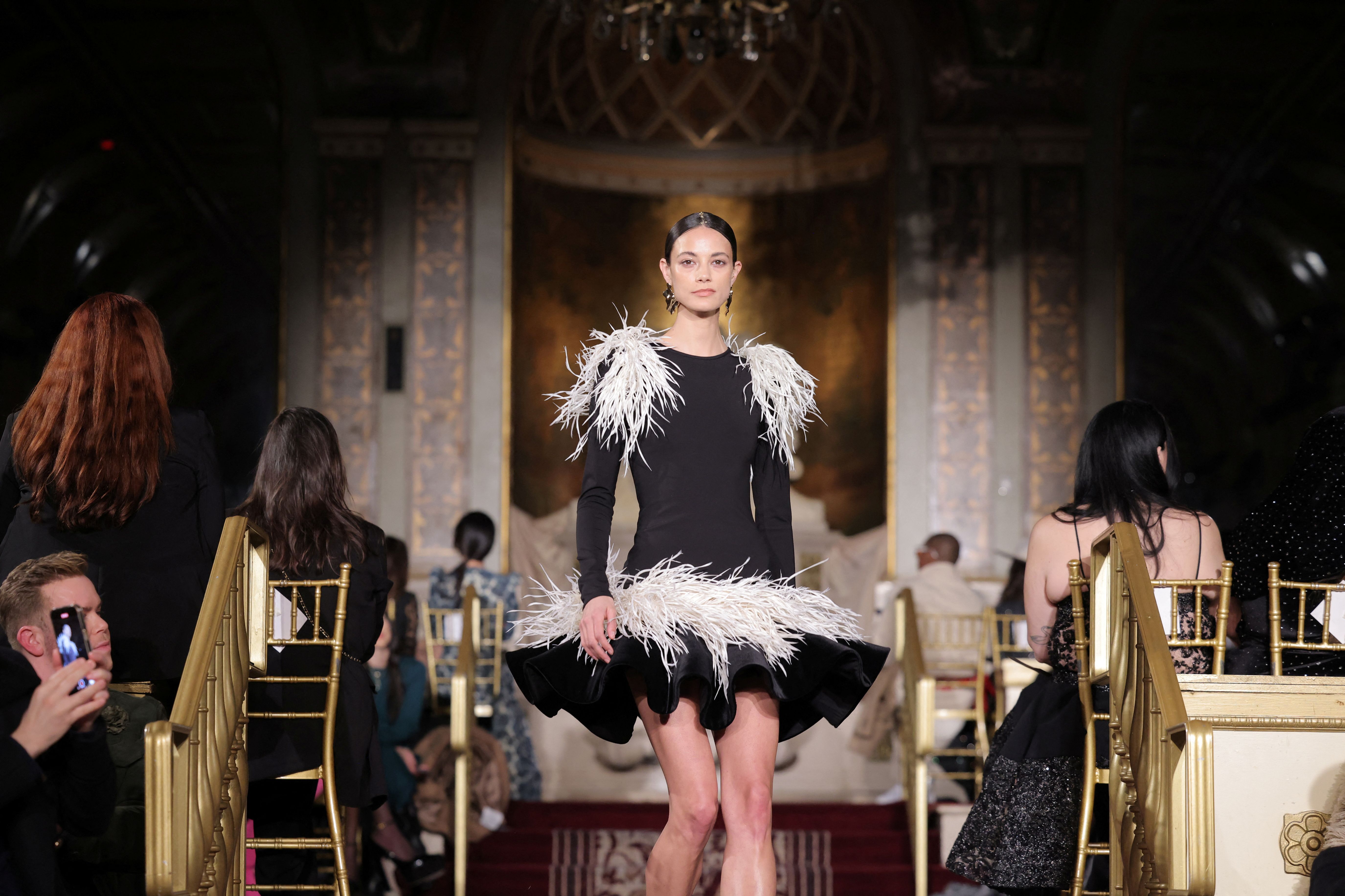 A model presents a creation at the Christian Siriano Fall/Winter 2024 collection show at New York Fashion Week, in New York City, U.S., February 8, 2024. (Photo by Andrew Kelly/Reuters)