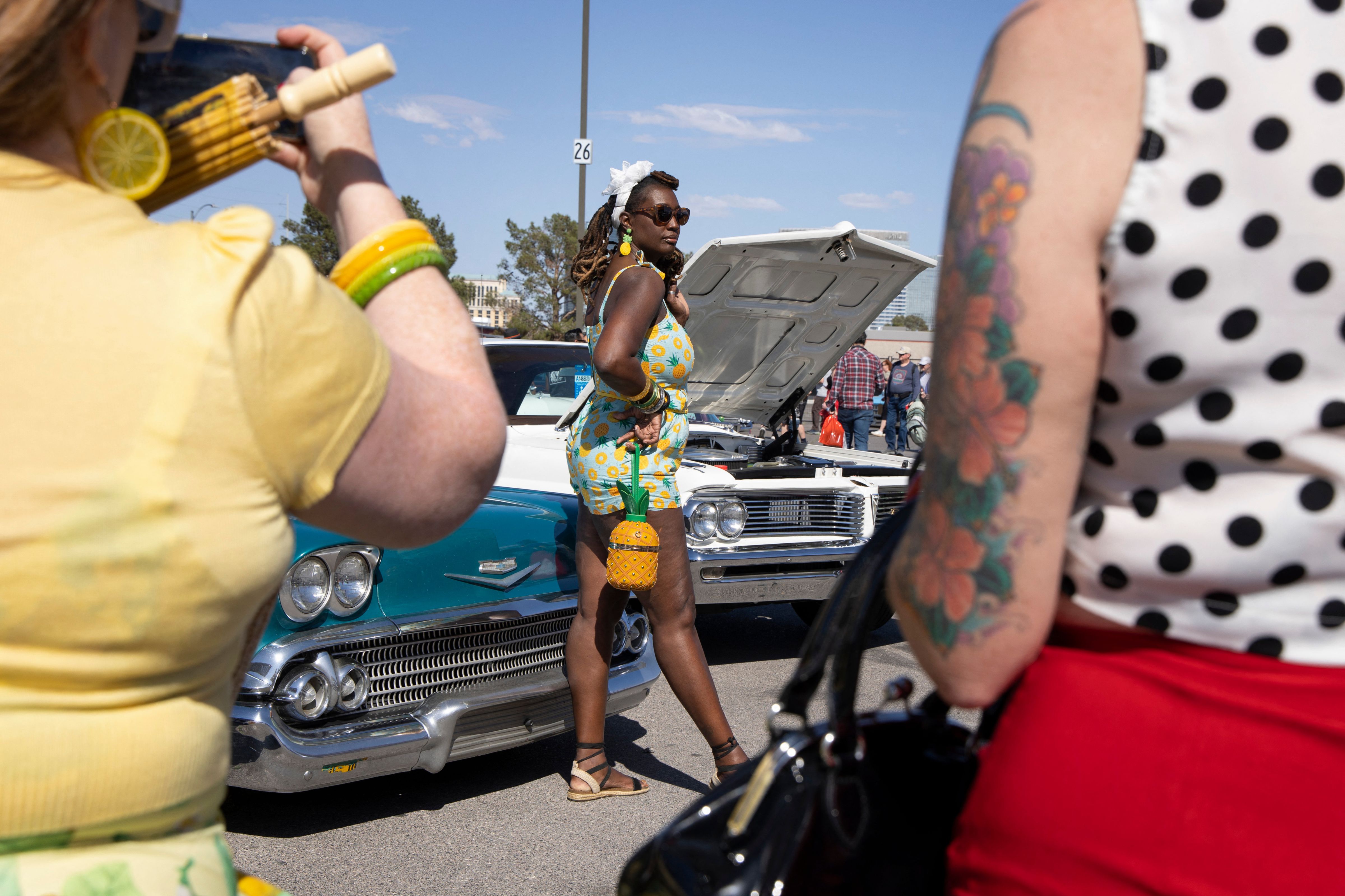 Kelli Hancock, of Los Angeles, stands for a personal photo at the Viva Las Vegas Rockabilly Weekend on April 26, 2025 in Las Vegas. The rockabilly music weekend, celebrating 28 years, features live bands, a classic car show and burlesque performances, among other activities that celebrate rockabilly culture. (Photo by Ronda Churchill/AFP Photo)