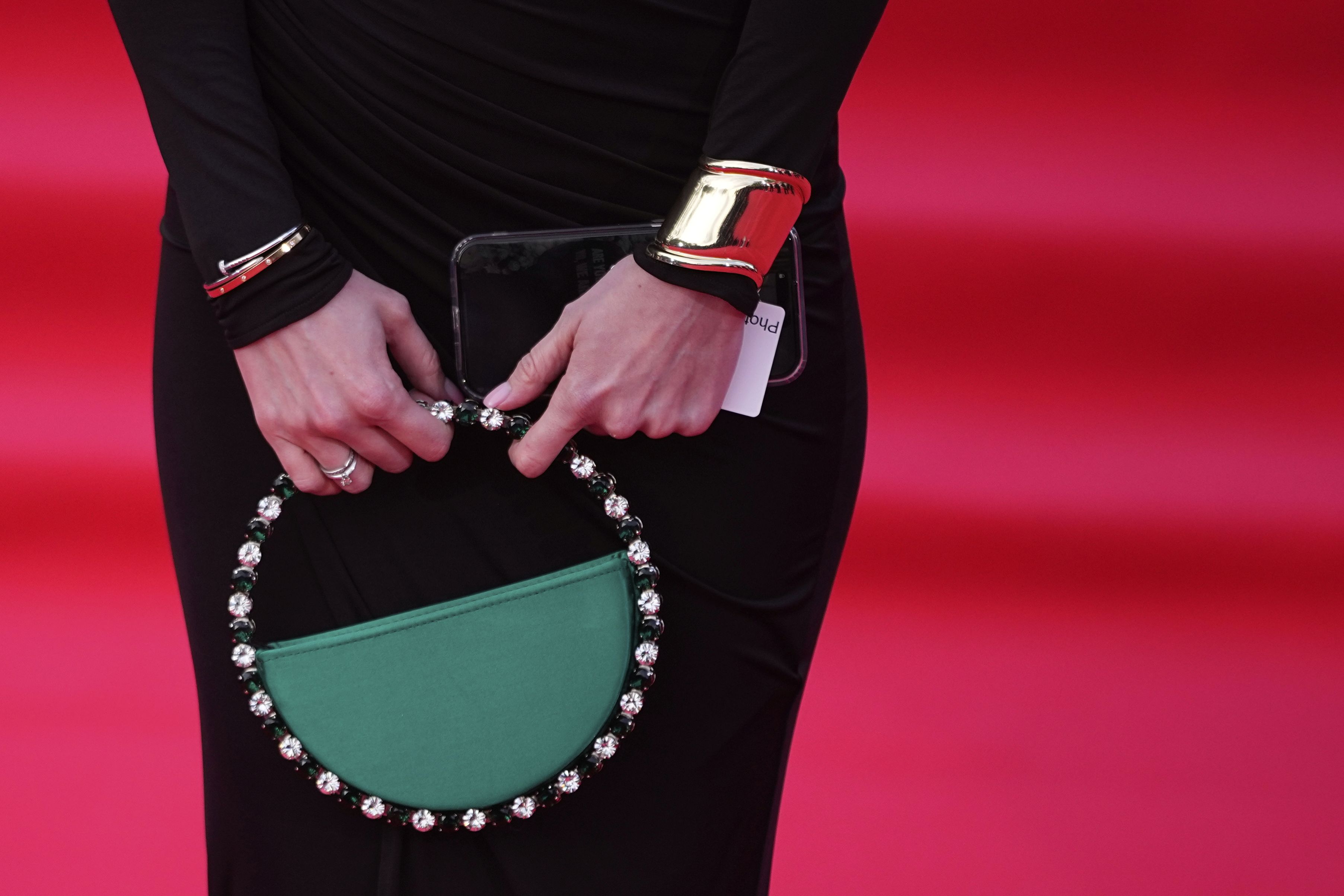 A guest poses for photographers upon arrival at the closing ceremony of the 47th Moscow International Film Festival in Moscow, Russia, Thursday, April 24, 2025. (Photo by Pavel Bednyakov/AP Photo)