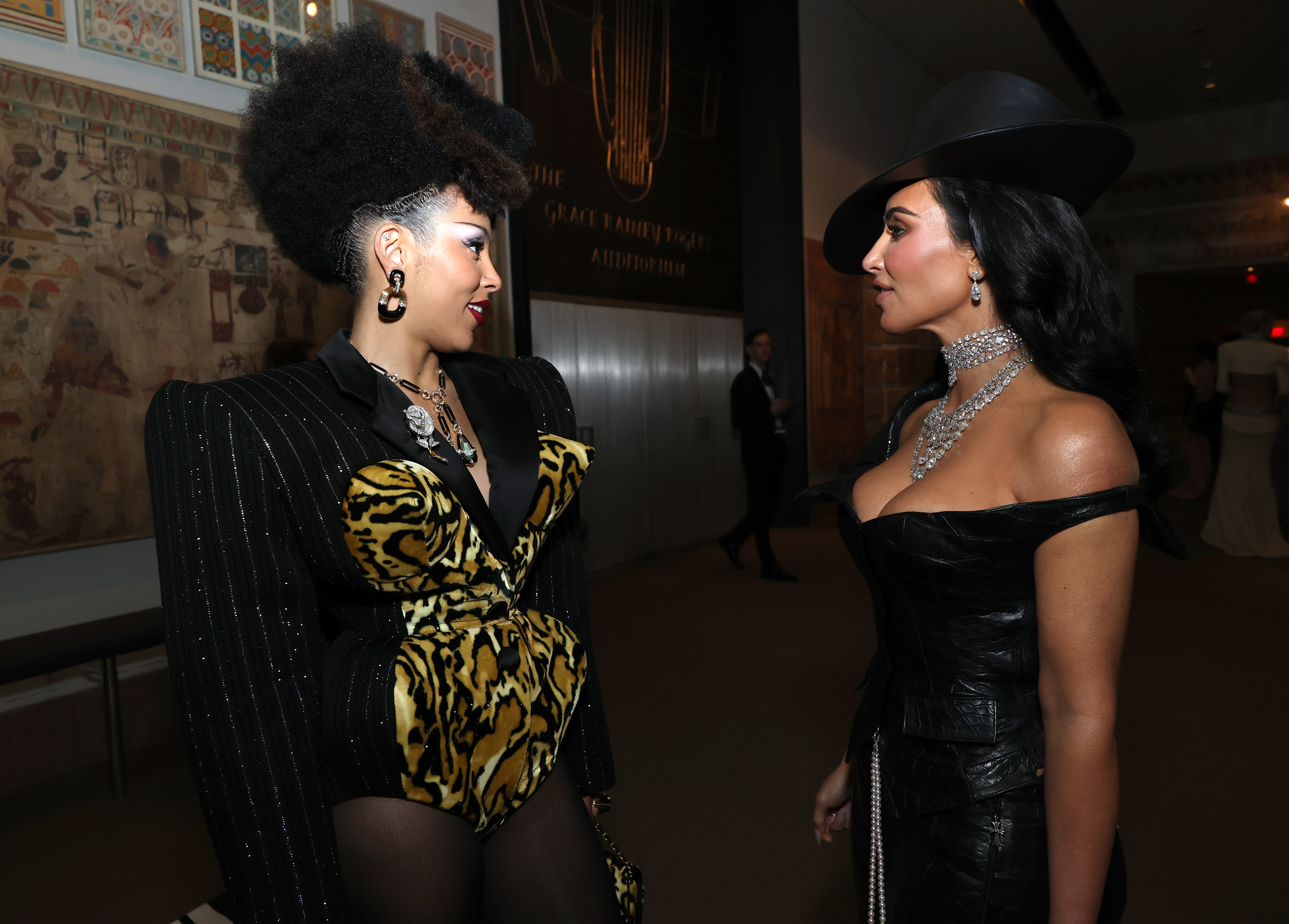 Doja Cat and Kim Kardashian attend the 2025 Met Gala Celebrating “Superfine: Tailoring Black Style” at Metropolitan Museum of Art on May 05, 2025 in New York City. (Photo by Kevin Mazur/MG25/Kevin Mazur/Getty Images for The Met Museum/Vogue)