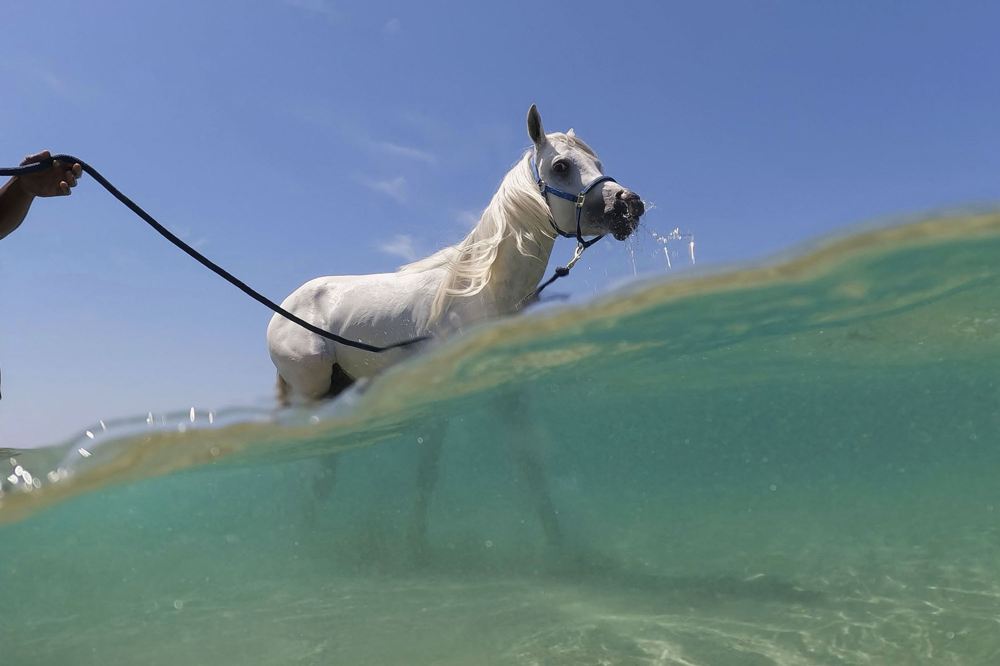 A man leads his horse into the Mediterranean Sea near Hadera, Israel, Saturday, April 19, 2025. (Photo by Ariel Schalit/AP Photo)