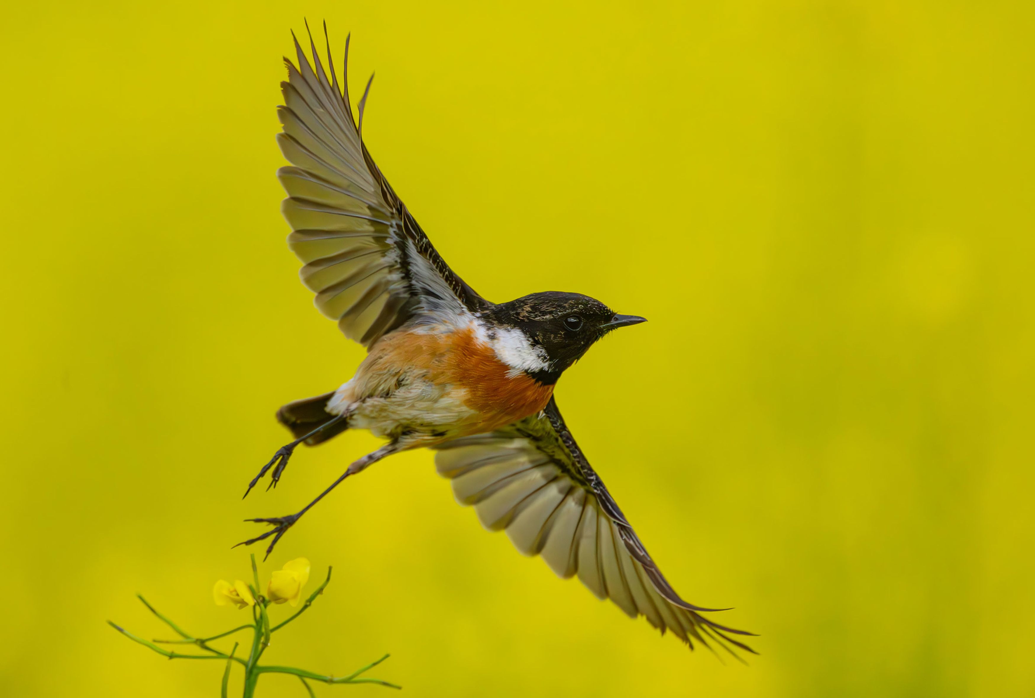 A European stonechat spreads its wings in Mallnow, Germany, on Friday, May 2, 2025. (Photo by Patrick Pleul/Picture Alliance/Getty Images)