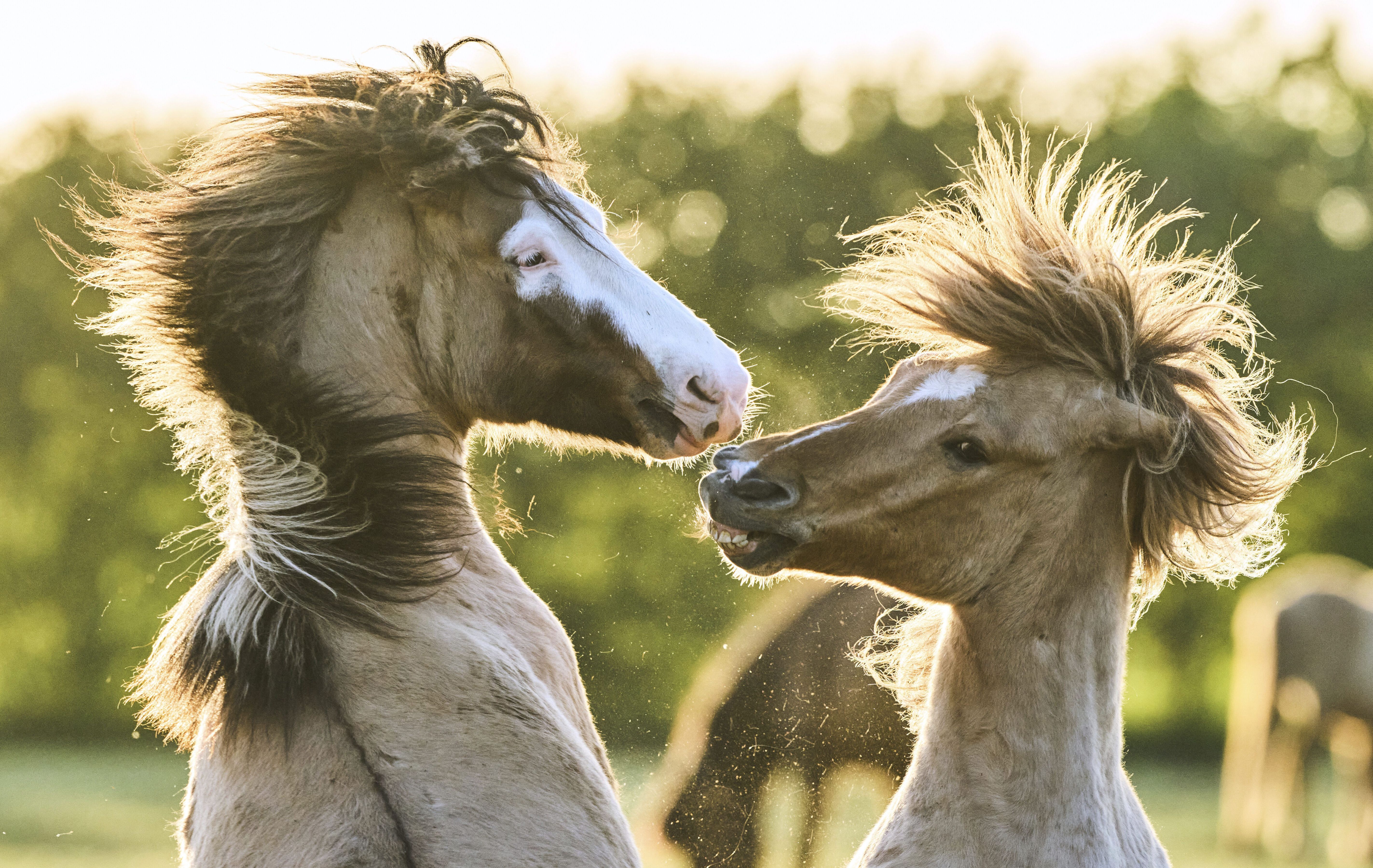Icelandic horses play at a stud farm in Wehrheim near Frankfurt, Germany, Wednesday, April 30, 2025. (Photo byh Michael Probst/AP Photo)