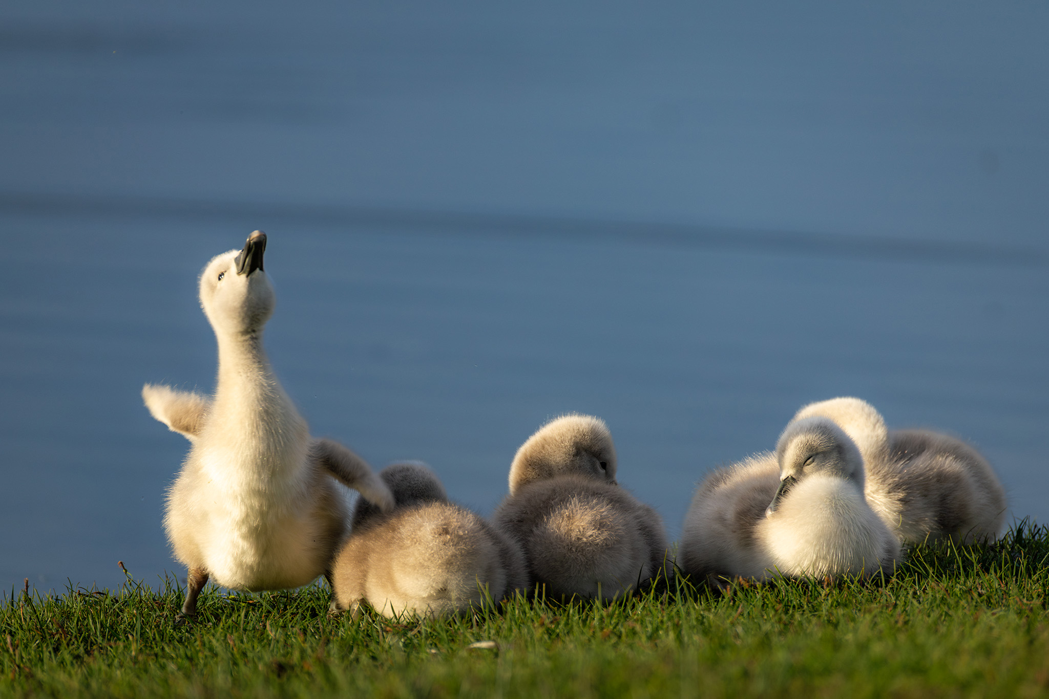 Cygnets stretch in the morning sun at Hatchet Pond near Beaulieu in the New Forest, Hampshire, UK on May 8, 2025. (Photo by Hang Ross/Bournemouth News)