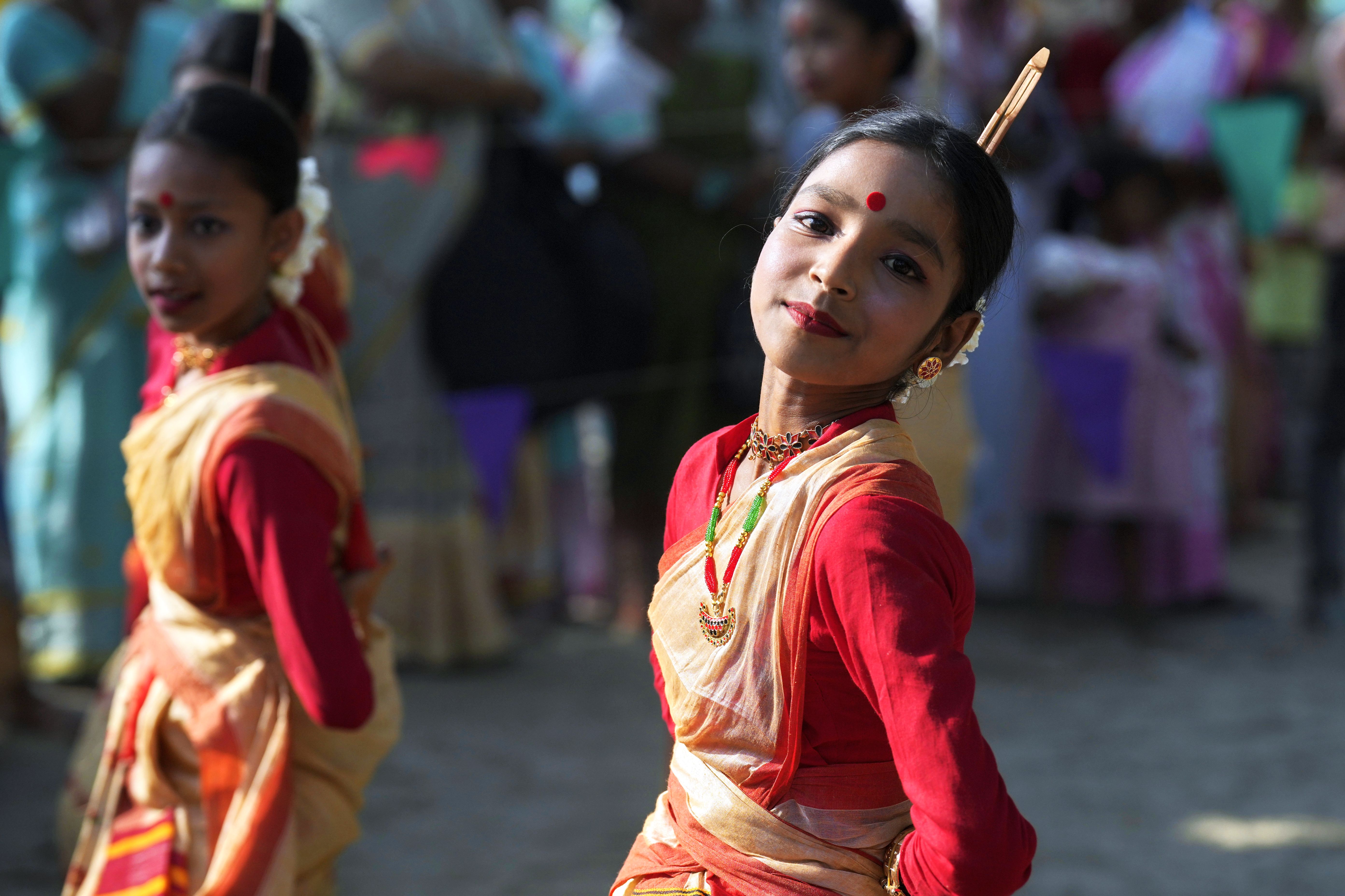 Assamese girls in traditional attire dance during the Gohain Uliuwa Mela festival in Mayong village on the outskirts of Guwahati, India, Saturday, April 19, 2025. (Photo by Anupam Nath/AP Photo)