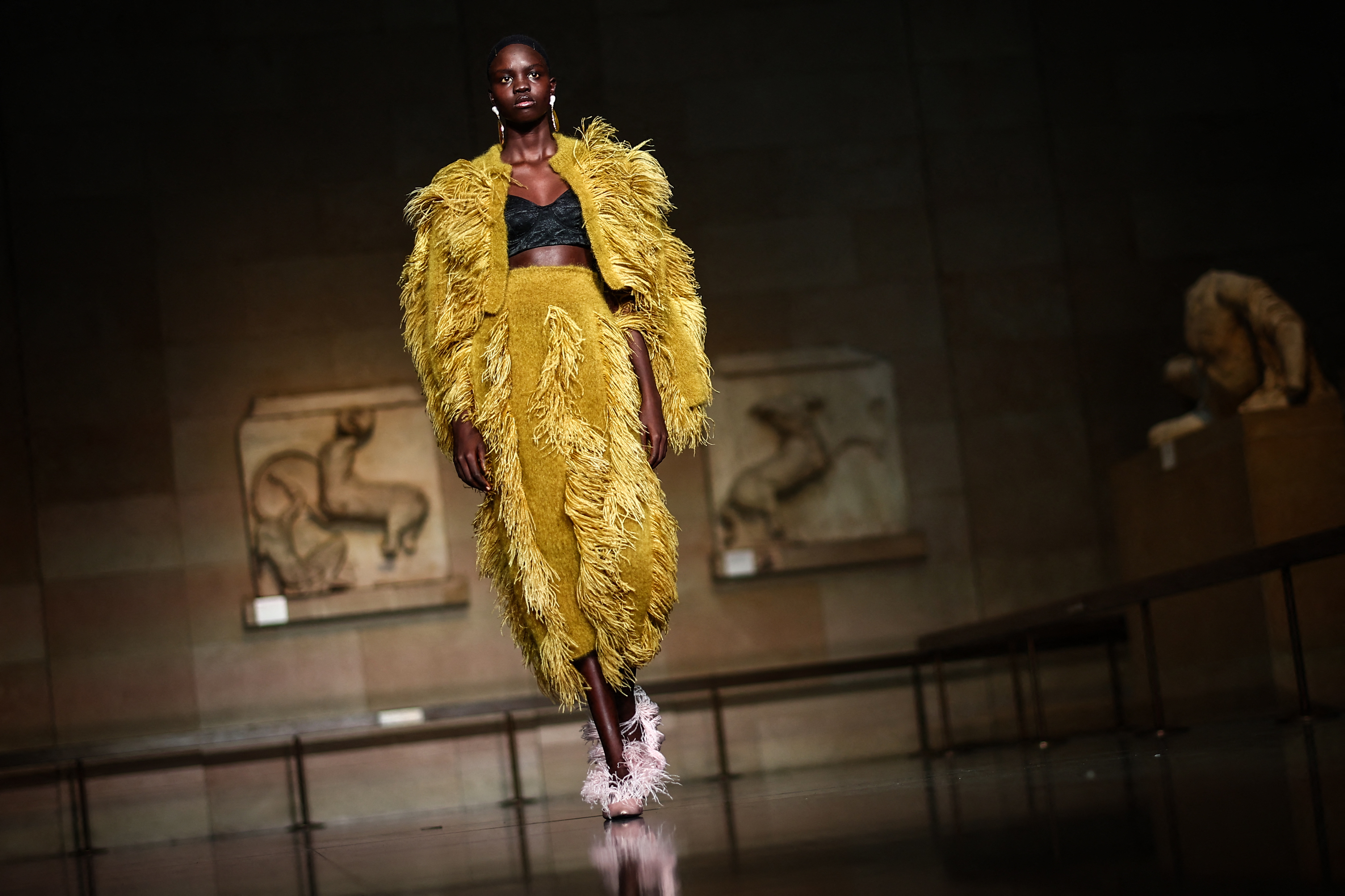 A model presents a creation for Erdem during their Autumn/Winter 2024 collection fashion show during London Fashion Week in London on February 17, 2024. (Photo by Henry Nicholls/AFP Photo)