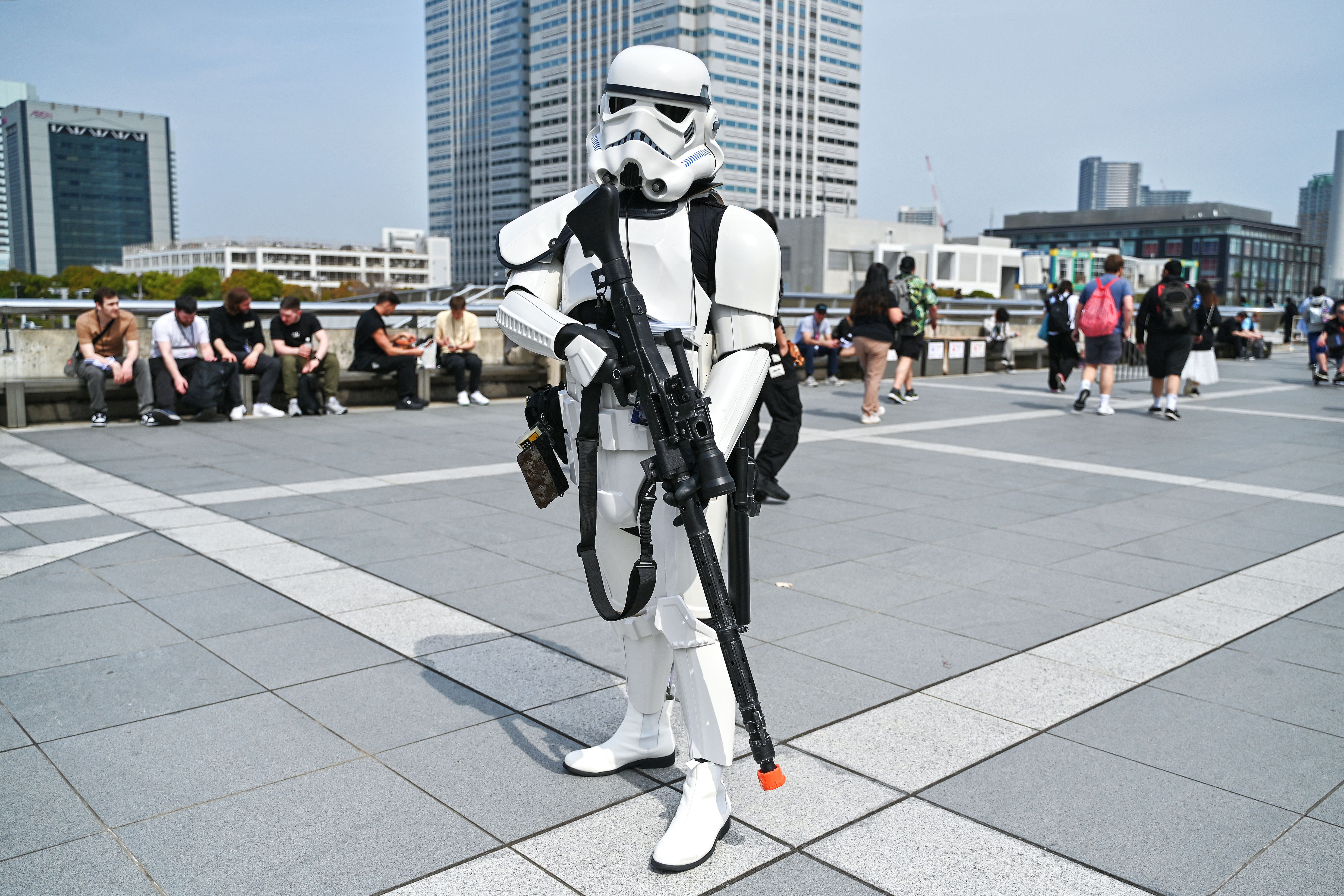 A visitor in costume poses while attending “Star Wars Celebration Japan 2025” at the Makuhari Messe convention centre in Chiba City, Chiba prefecture in suburban Tokyo on April 18, 2025. (Photo by Richard A. Brooks/AFP Photo)