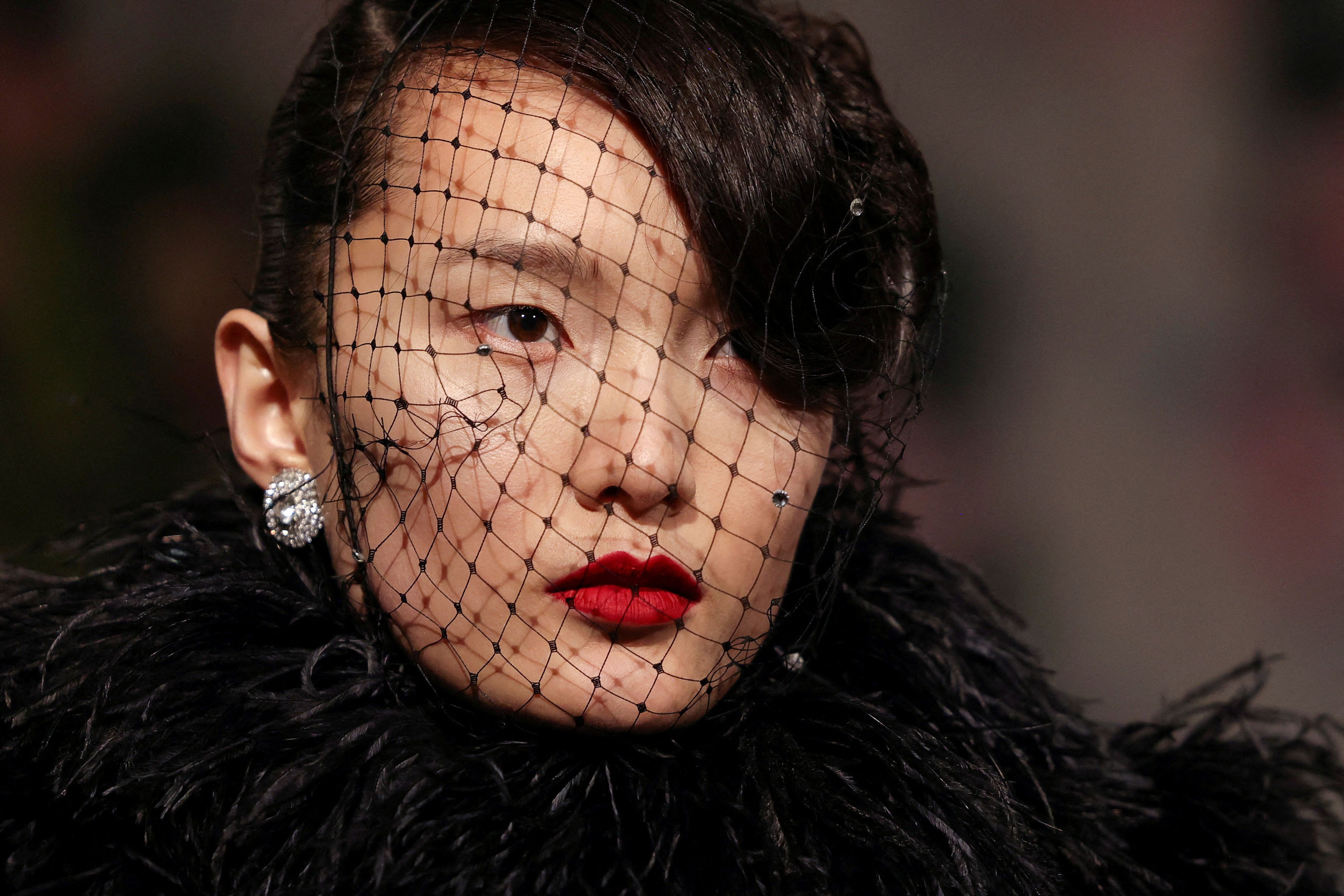 A model presents a creation at the Richard Quinn catwalk show during London Fashion Week, in London, Britain on February 17, 2024. (Photo by Hollie Adams/Reuters)