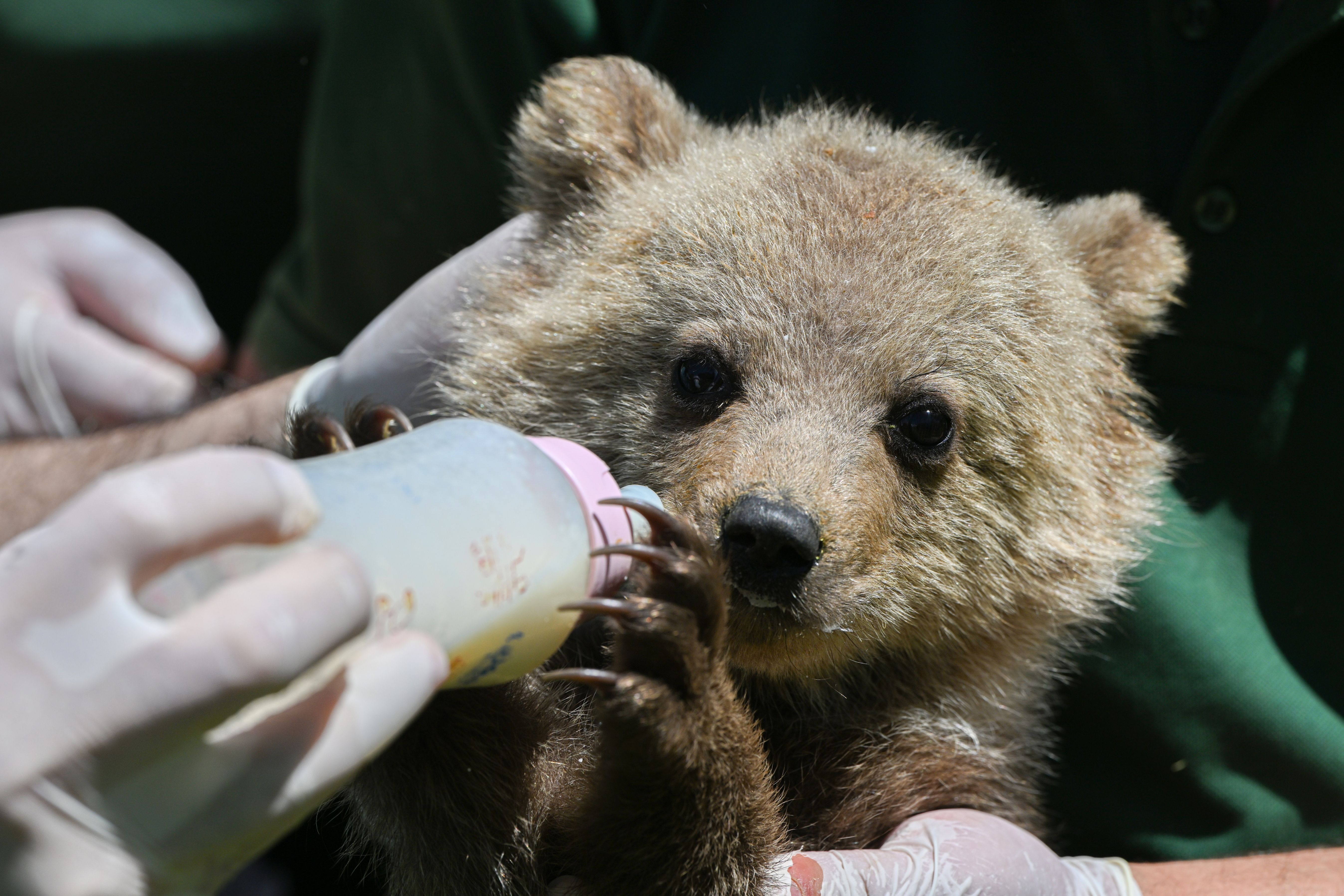 3-month-old bear cub named 'Boncuk,' the newest resident of Gaziantep Wildlife Park, is receives special care and attention in Gaziantep, Turkiye on May 18, 2025. (Photo by Adsiz Gunebakan/Anadolu via Getty Images)