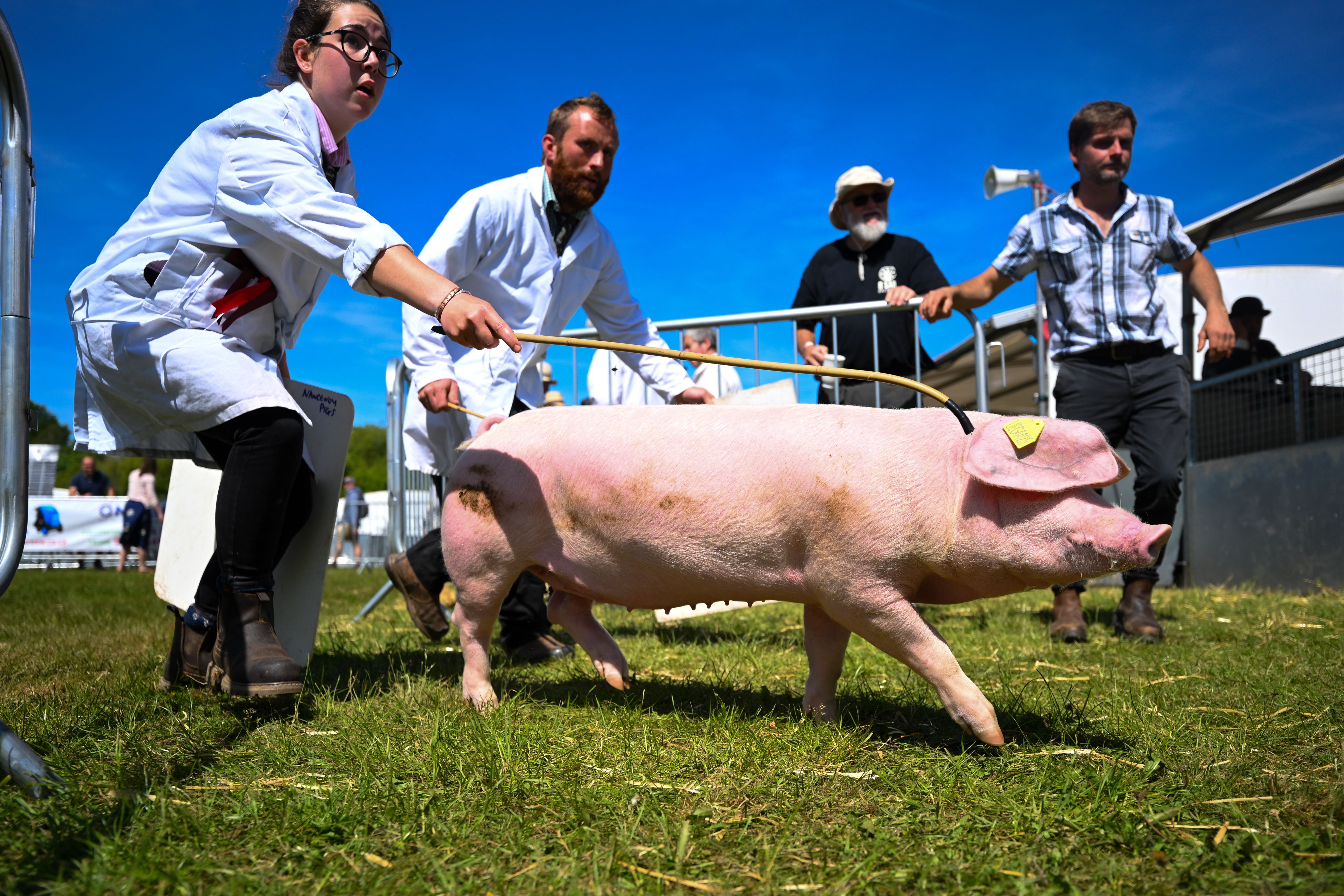 Pigs are judged at the Devon County Show at Westpoint Arena, on May 15, 2025 in Exeter, England. Established in 1872, the show has grown into one of the South West's biggest county shows, serving as a fundraising activity for the Devon County Agricultural Association. Although primarily an agricultural livestock and produce showcase, it is also seen as a barometer for the health of the whole agricultural industry in general. (Photo by Finnbarr Webster/Getty Images)
