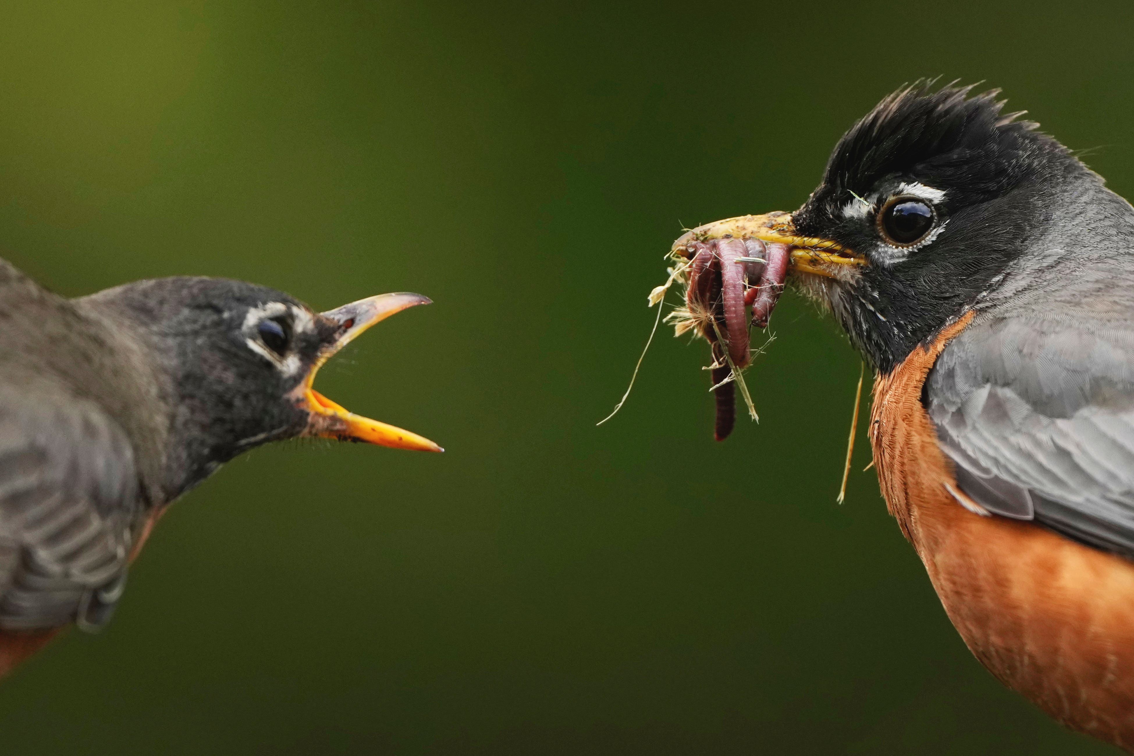 Two American robins battle over a breakfast of worms Friday, May 16, 2025 in Overland Park, Kan. (Photo by Charlie Riedel/AP Photo)