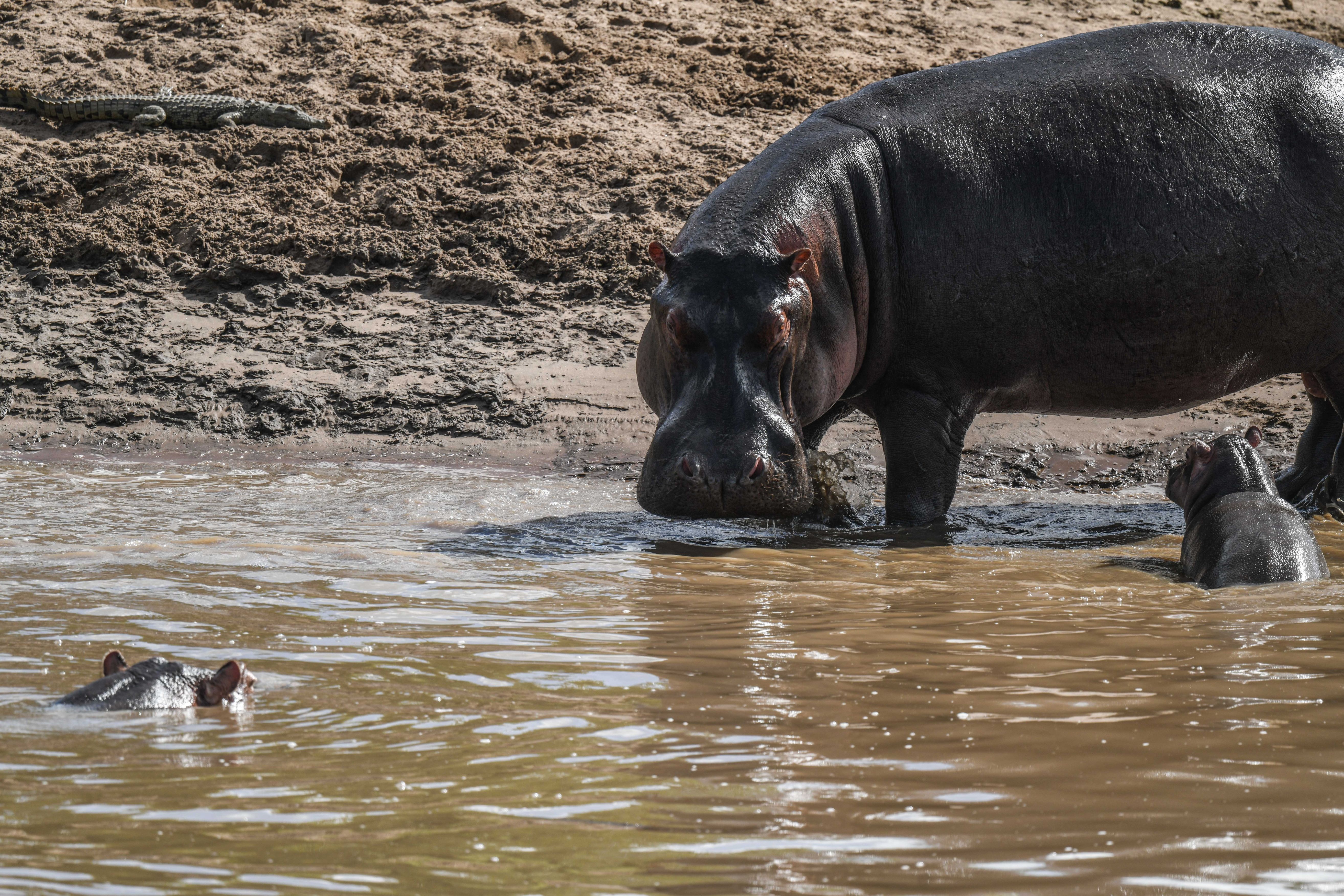 Hippopotamuses are seen at the Maasai Mara National Reserve, which is home to dozens of species of wildlife such as lions, leopards, cheetahs, elephants, giraffes, zebras and antelopes, in Kenya on May 06, 2025. Every year, millions of wildlife animals migrate from the Serengeti National Park in Tanzania to the Maasai Mara, a natural habitat within Kenya's borders. (Photo by Gerald Anderson/Anadolu via Getty Images)