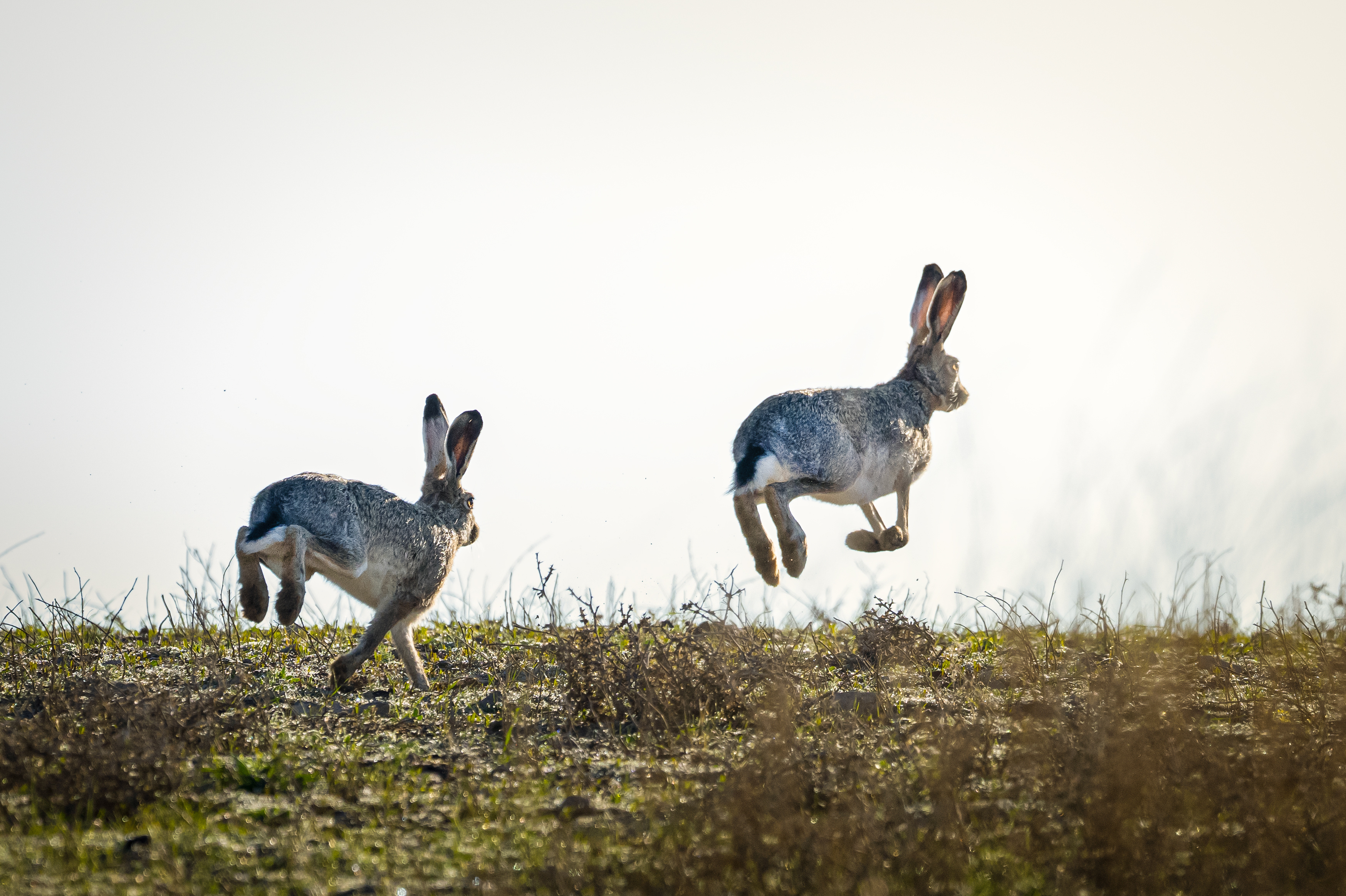 European hares (Lepus europaeus) hop on a field in Kulu district in Konya, Turkiye on May 12, 2025. (Photo by Alper Tuydes/Anadolu via Getty Images)