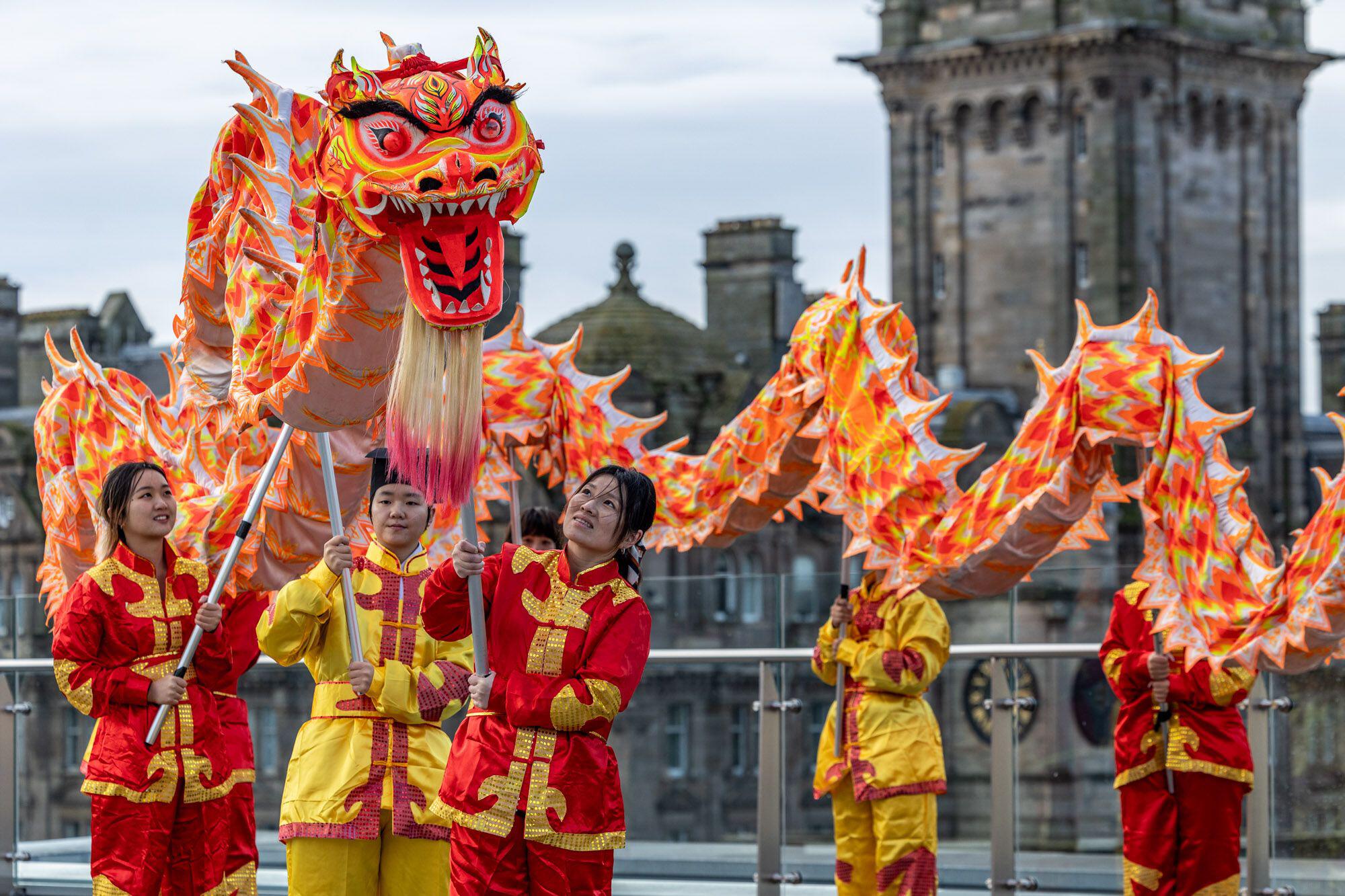 Organisers of Edinburgh's Chinese New Year Festival on February 1, 2023 announce a full programme of events and activities across the city to celebrate Chinese New Year and the start of The Year of the Dragon. The programme, which includes the Official Chinese New Year Concert, lion dances at St James Quarter, bilingual ceilidhs, tai chi sessions, calligraphy and tarot card reading, runs from 3rd to 13th February 2024. (Photo by Rich Dyson/Alamy Live News)