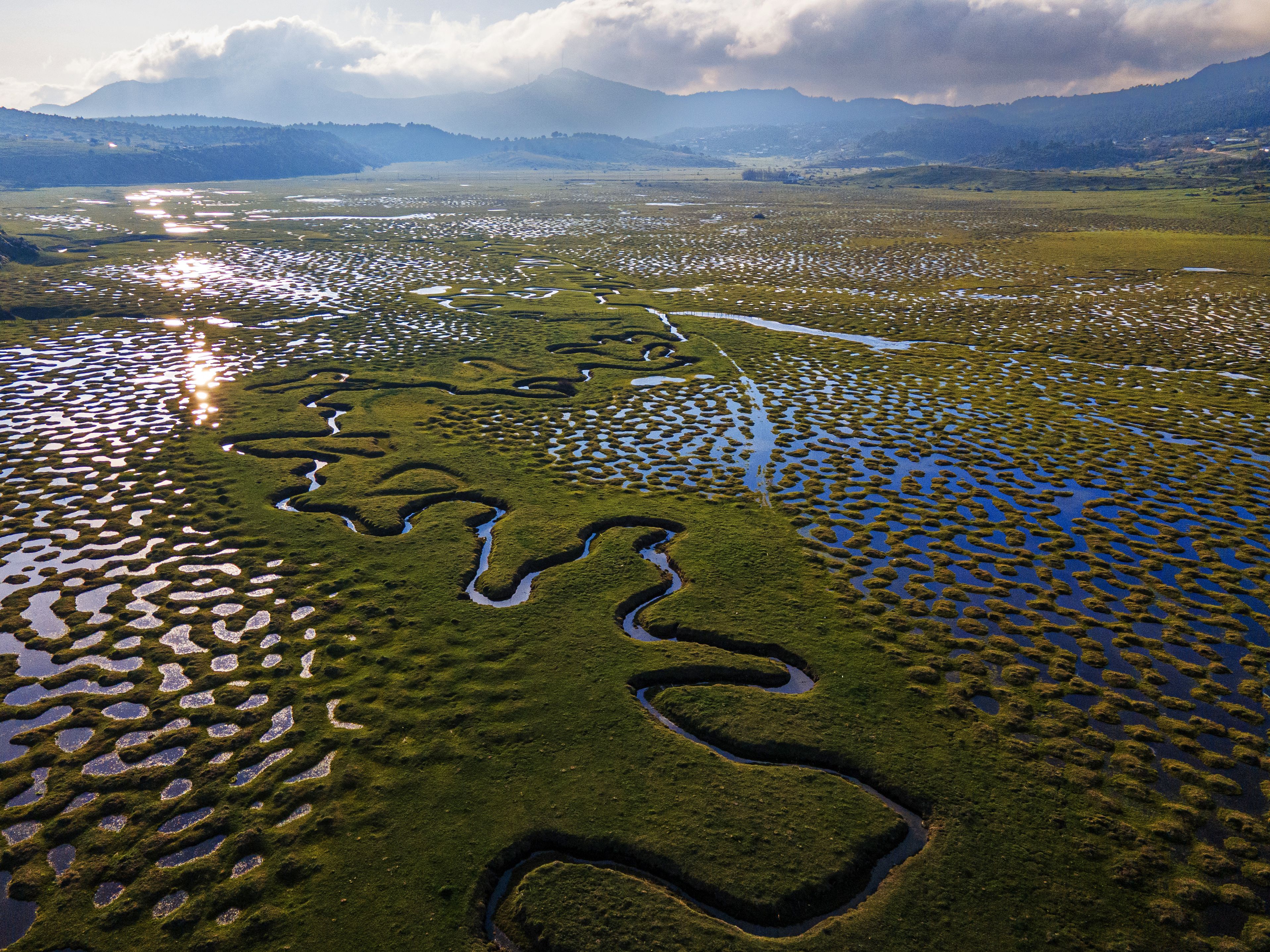 An aerial view of the meanders of the Sakarya River located at the Karagol Plateau, that surrounded by pine, beech, fir and oak trees, in Tarakli district of Sakarya, Turkiye on April 06, 2025. The water-filled meanders on the plateau create a beautiful view with the arrival of spring and the revival of nature. The river, which originates in Central Anatolia and reaches the Black Sea, plays a critical role for both ecosystems and people. (Photo by Seyit Konyali/Anadolu via Getty Images)