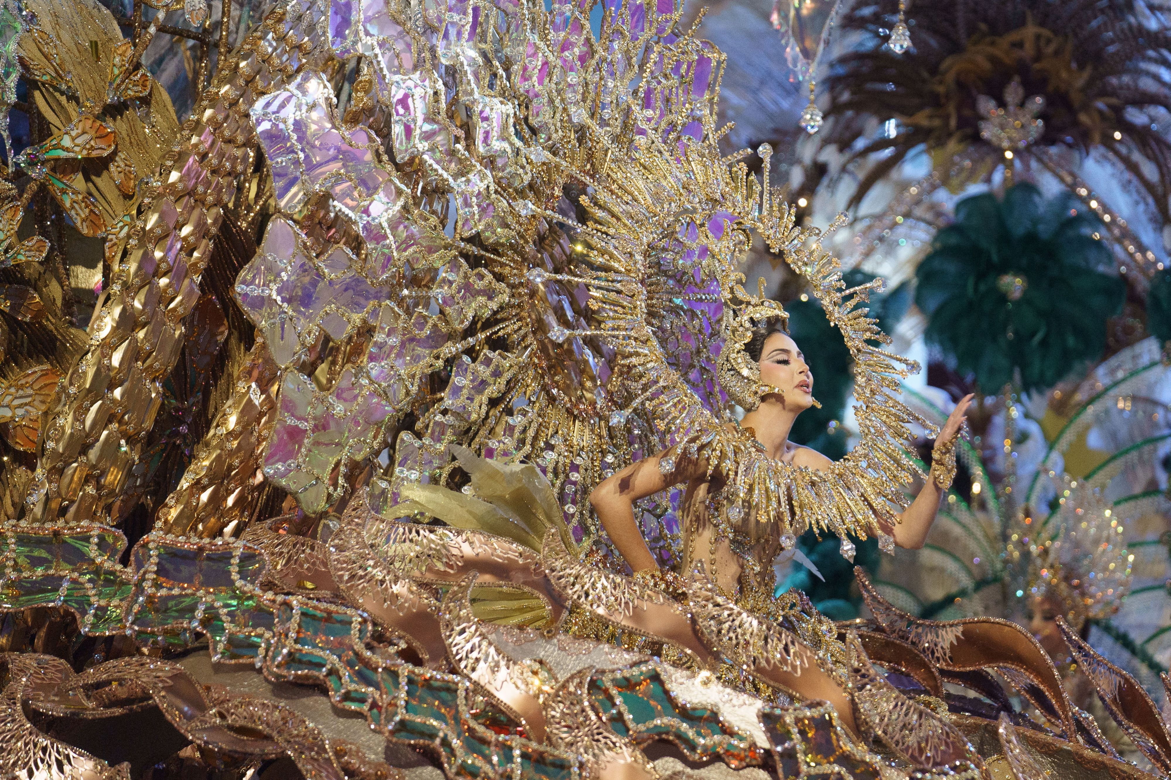 Candidate Corina Mrazek Gonzalez wins the Carnival's Queen gala wearing the fantasy 'El mundo' (The World) during Carnival's Queen gala at Santa Cruz de Tenerife, Canary Islands, Spain, 07 February 2024. (Photo by Ramon de la Rocha/EPA/EFE)