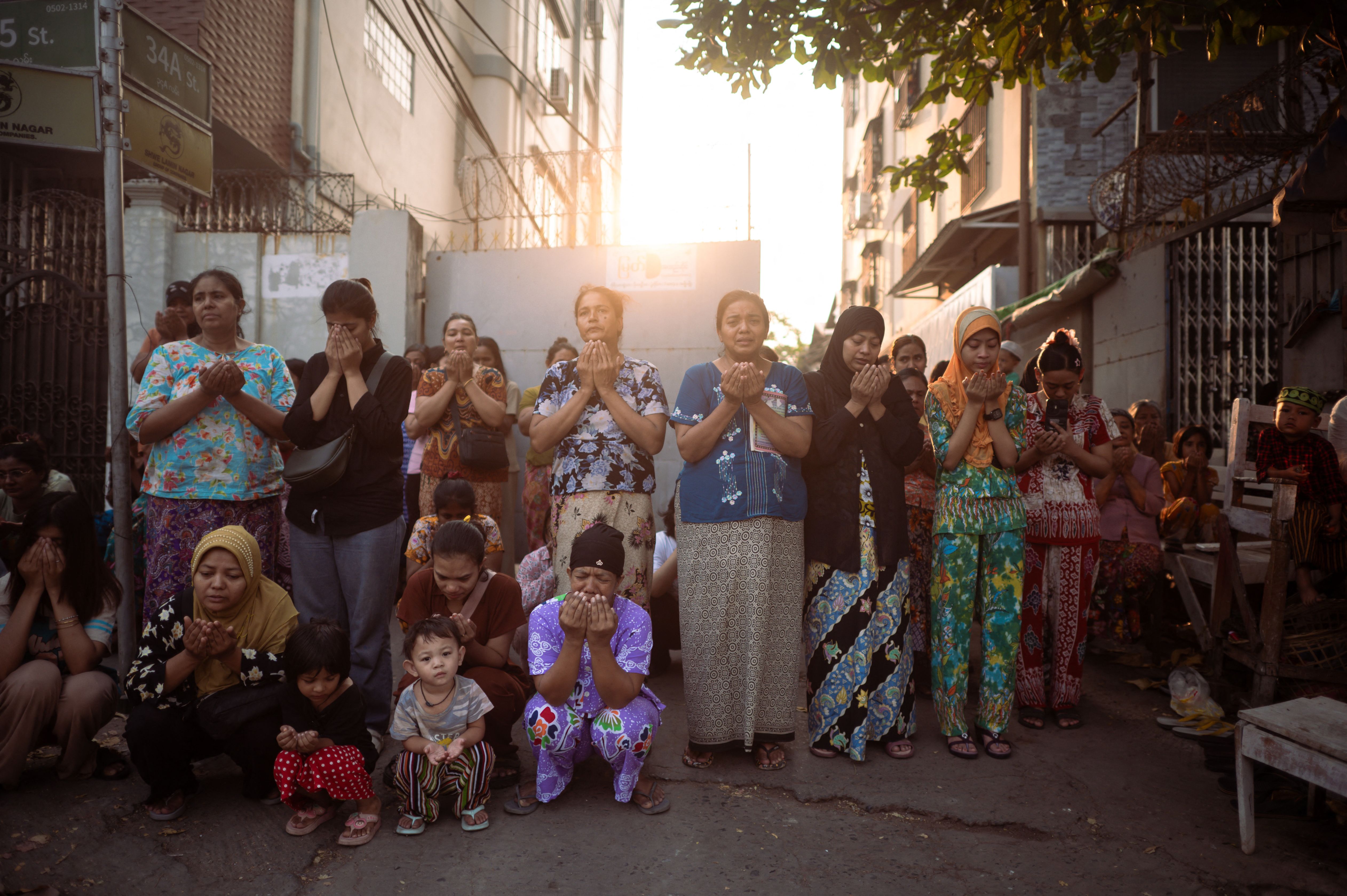 Muslims offer morning prayers to start the Eid al-Fitr festival, marking the end of the holy fasting month of Ramadan on a road near destroyed mosques in Mandalay on March 31, 2025, three days after the deadly Myanmar earthquake. Hopes were fading of finding more survivors in the rubble of Mandalay, where some residents spent a third night sleeping in the open after a massive earthquake killed at least 1,700 people in Myanmar and neighbouring Thailand. (Photo by Sai Aung Main/AFP Photo)