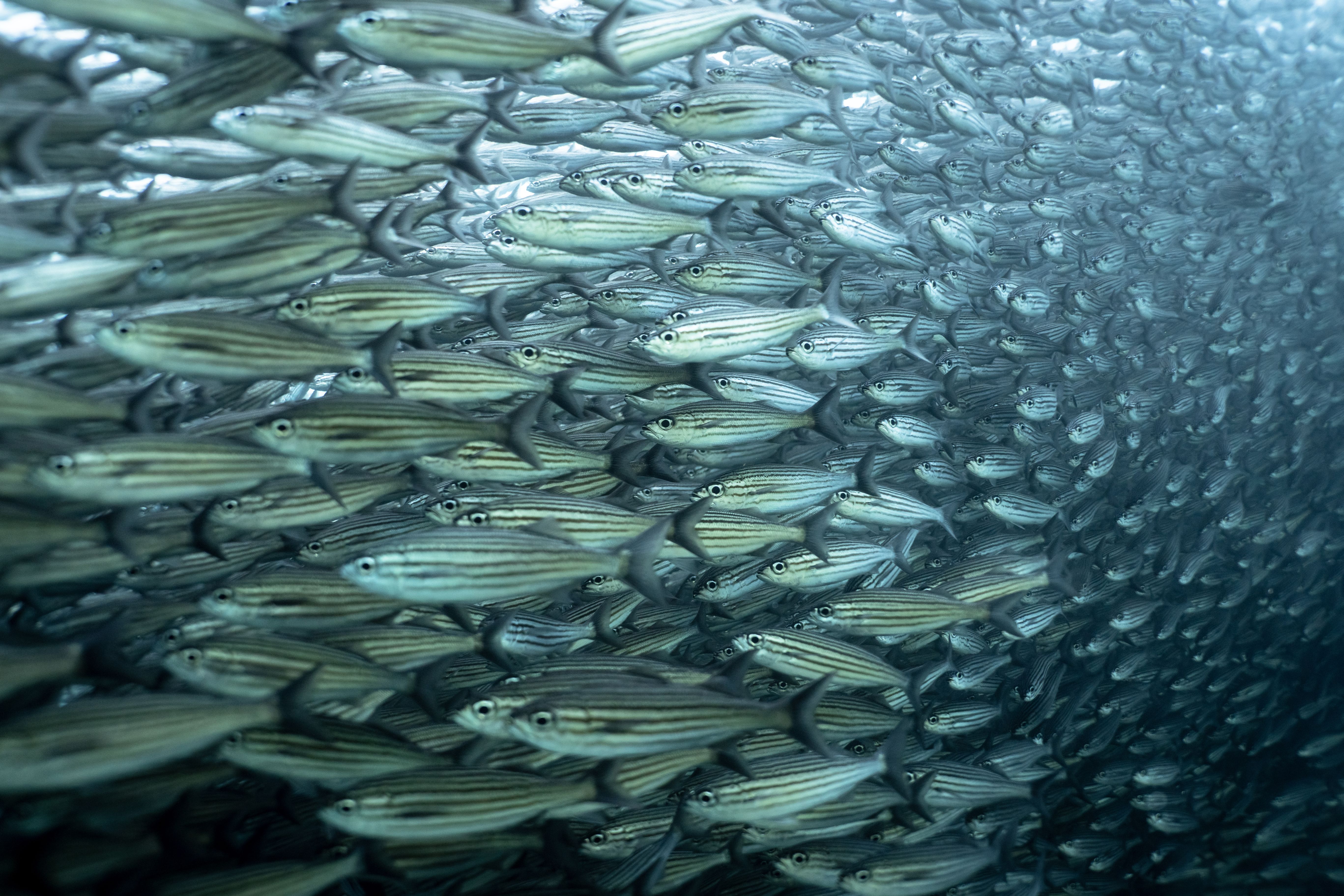 A flock of fish in Kicker Rock Islet near San Cristobal island, part of Galapagos archipelago on February 09, 2025. Located in Ecuadorone of South America's most fascinating countriesthe Galapagos National Park spans 13 main islands and numerous islets, captivating biologists, environmental scientists, and tourists with its rich ecology. Recognized as one of the world's largest and most biologically diverse marine protected areas, the Galapagos Marine Reserve is home to more than 2,900 marine species. As a rising destination for studying and documenting underwater biodiversity, the archipelago hosts an array of remarkable wildlife, including hammerhead sharks, sand sharks, sea turtles, stingrays, whales, dolphins, albatrosses, sea lions, penguins, fur seals, cormorants, marine iguanas, tropical fish, and the great blue heron. (Photo by Ozge Elif Kizil/Anadolu via Getty Images)