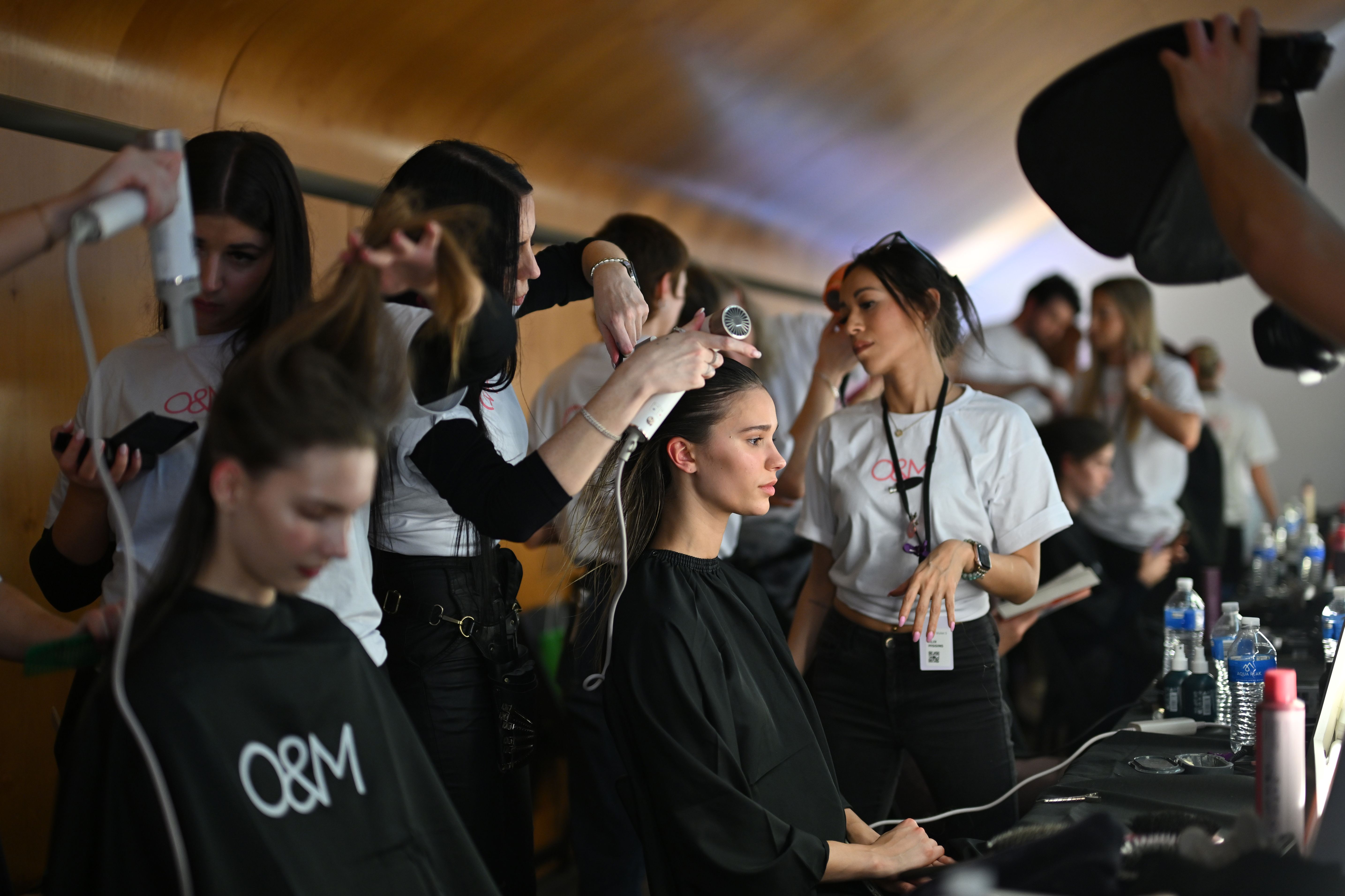 Models prepare backstage ahead of the Bianca Spender show at Australian Fashion Week 2025 at St. Barnabas Anglican Church on May 14, 2025 in Sydney, Australia. (Photo by James Gourley/Getty Images)