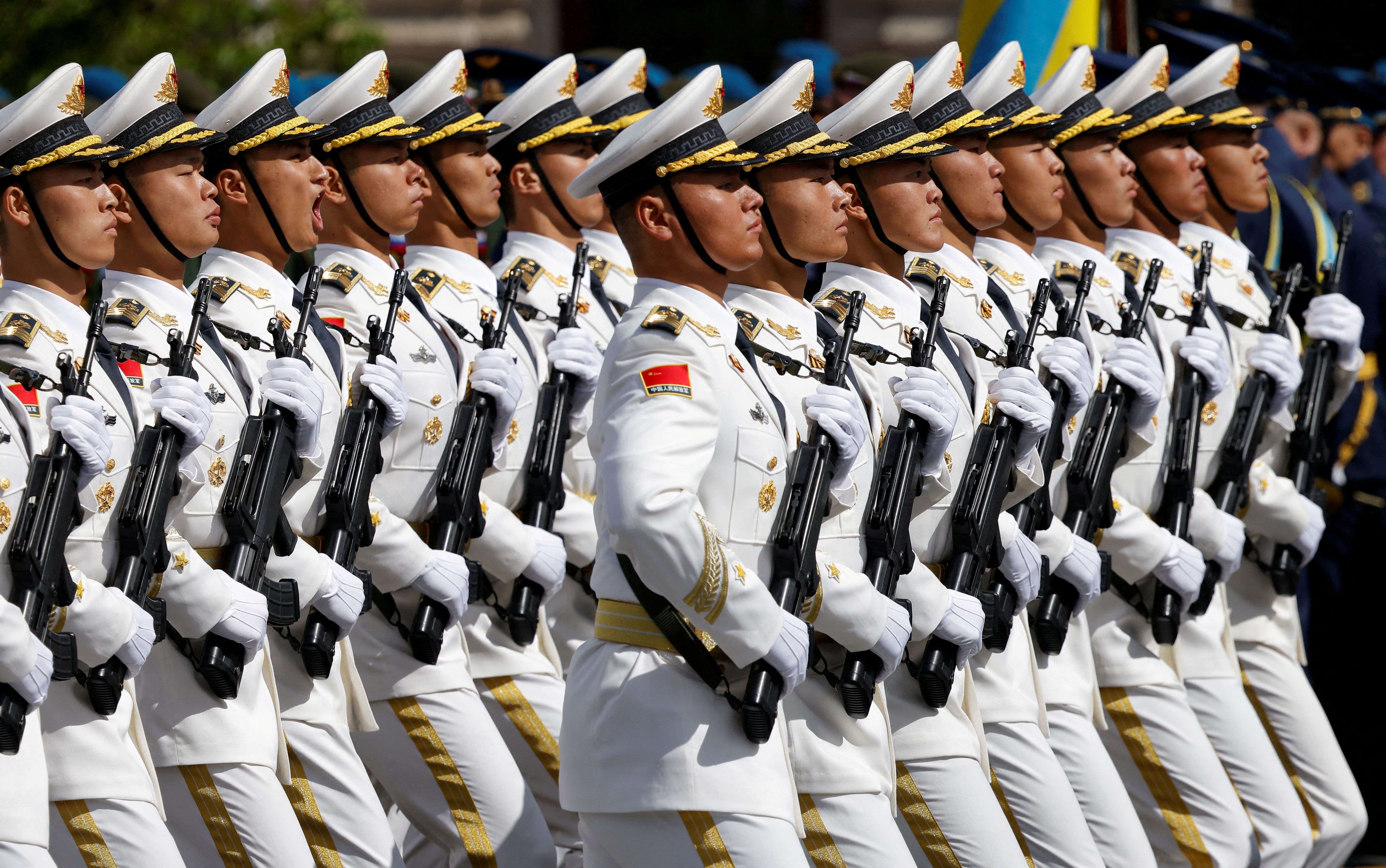 Chinese service members march in columns during a military parade on Victory Day, marking the 80th anniversary of the victory over Nazi Germany in World War Two, in Red Square in central Moscow, Russia, on May 9, 2025. (Photo by Maxim Shemetov/Reuters)