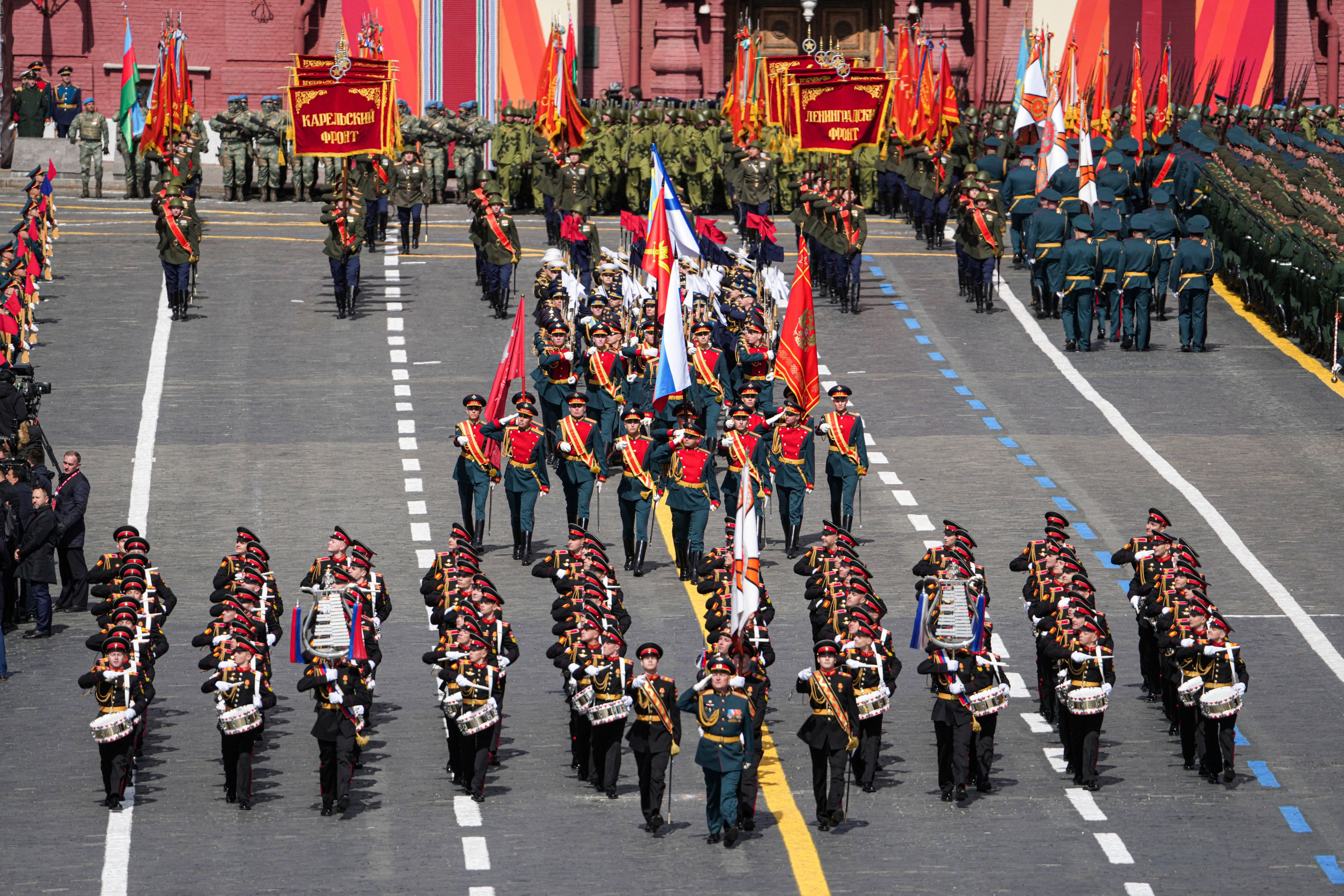 Russian service members march in columns during a military parade on Victory Day, marking the 80th anniversary of the victory over Nazi Germany in World War Two, in Red Square in central Moscow, Russia, on May 9, 2025. (Photo by Alexander Vilf/Host agency RIA Novosti/Handout via Reuters)