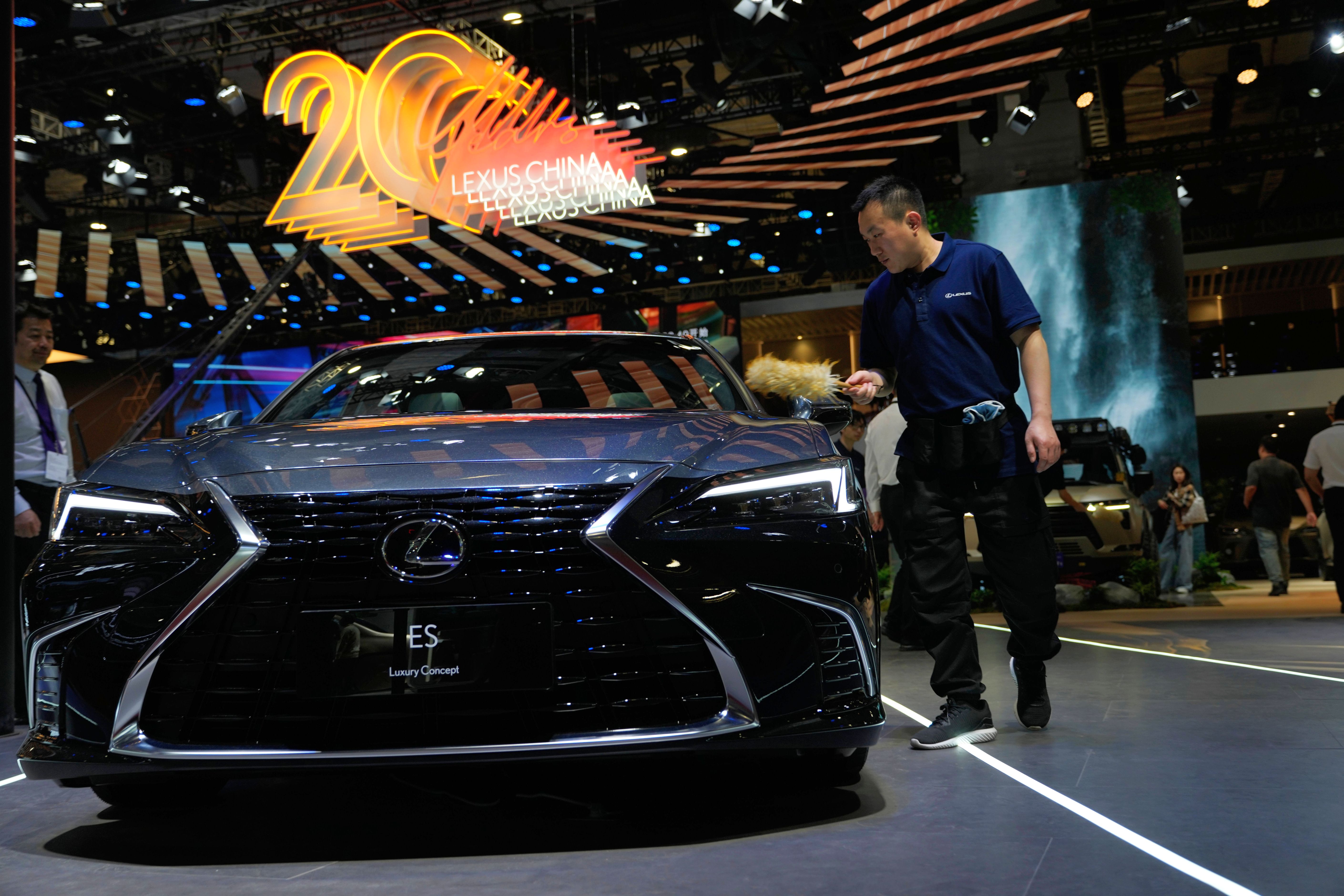 A polish brush is run by a Lexus ES Luxury Concept car at the Auto Show in Shanghai, Wednesday, April 23, 2025. (Photo by Ng Han Guan/AP Photo)