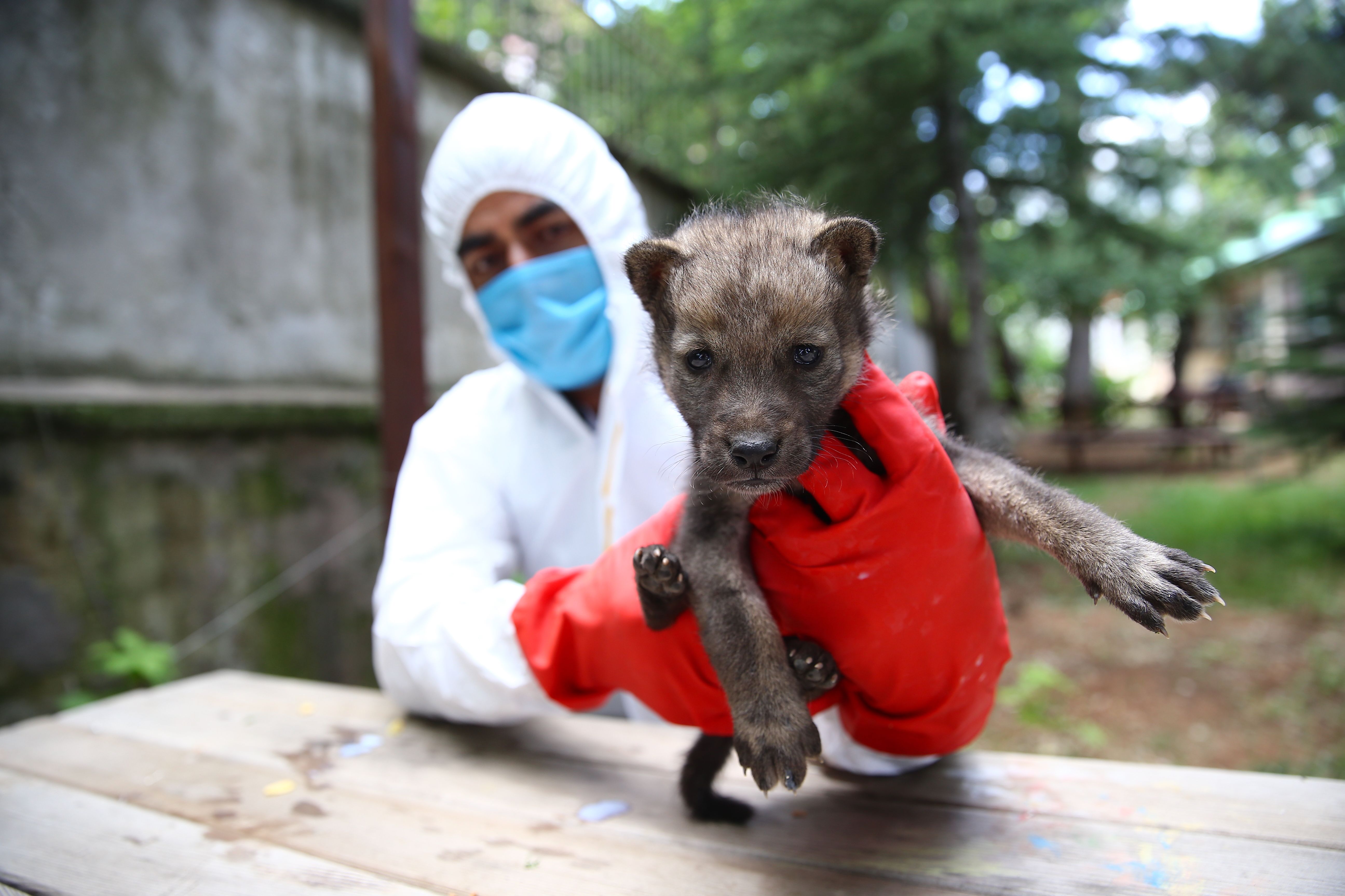 A wolf pup, found by teams from the Directorate of Nature Conservation and National Parks, receive treatment in Solhan district of Bingol, Turkiye on May 30, 2025. The pup will be sent back after its treatment completed and join its family. (Photo by Ridvan Korkulutas/Anadolu via Getty Images)