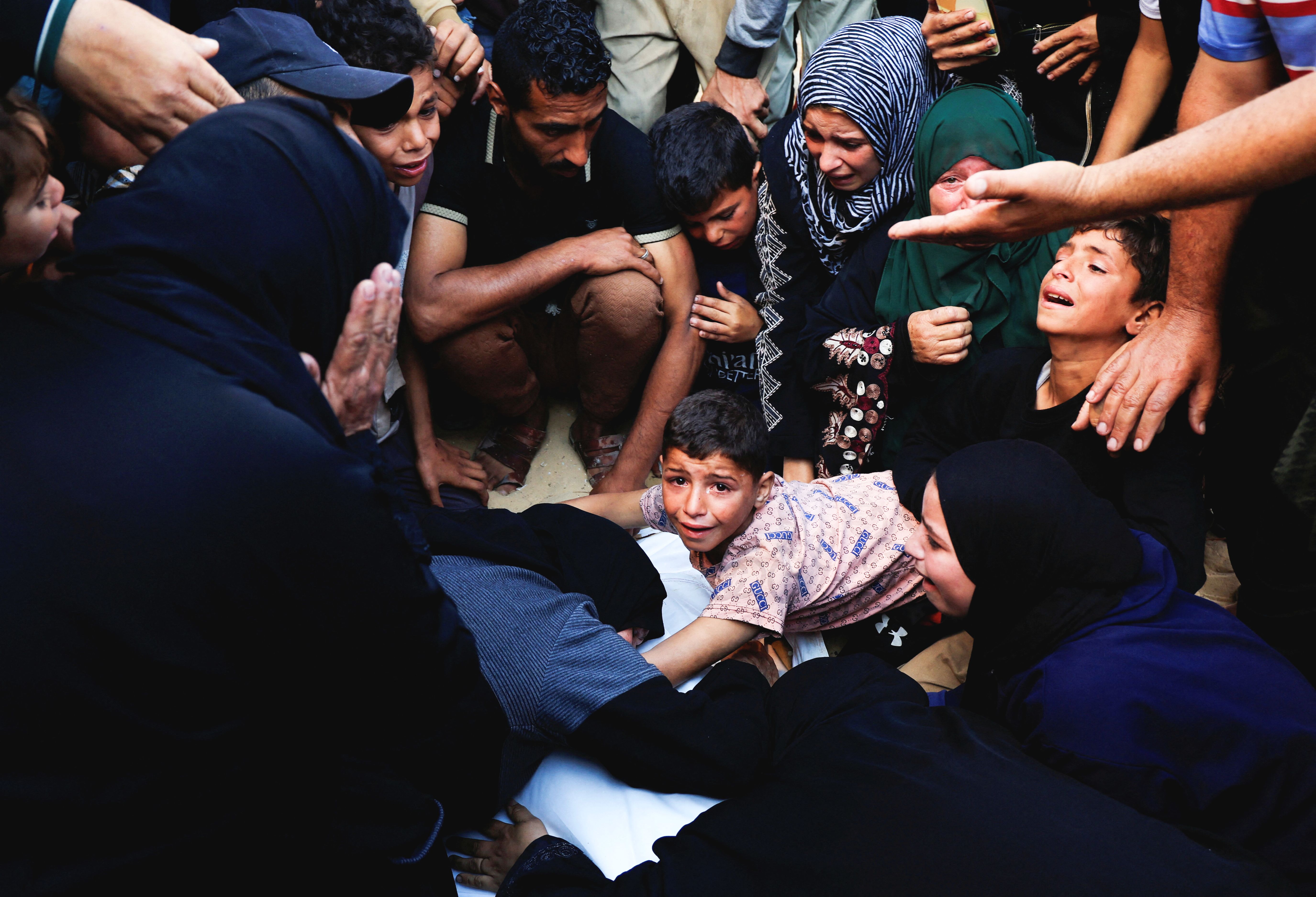Mourners react as they attend the funeral of Palestinians killed in Israeli strikes, at Nasser hospital, in Khan Younis, in the southern Gaza Strip, on May 23, 2025. (Photo by Hatem Khaled/Reuters)