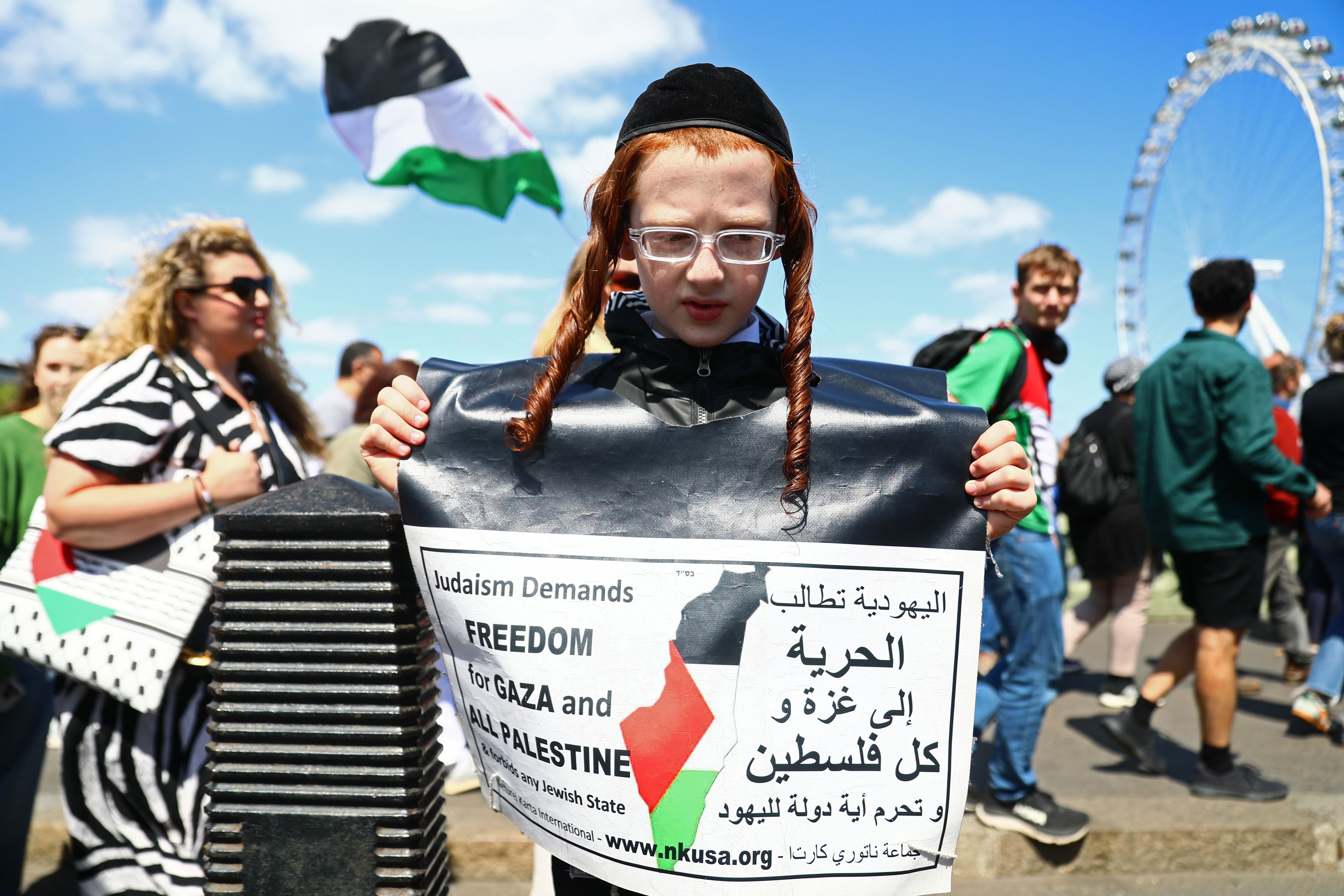 A young protester takes part in the National March For Palestine, marking the 77th anniversary of Nakba Day on May 17, 2025 in London, England. (Photo by Alishia Abodunde/Getty Images)