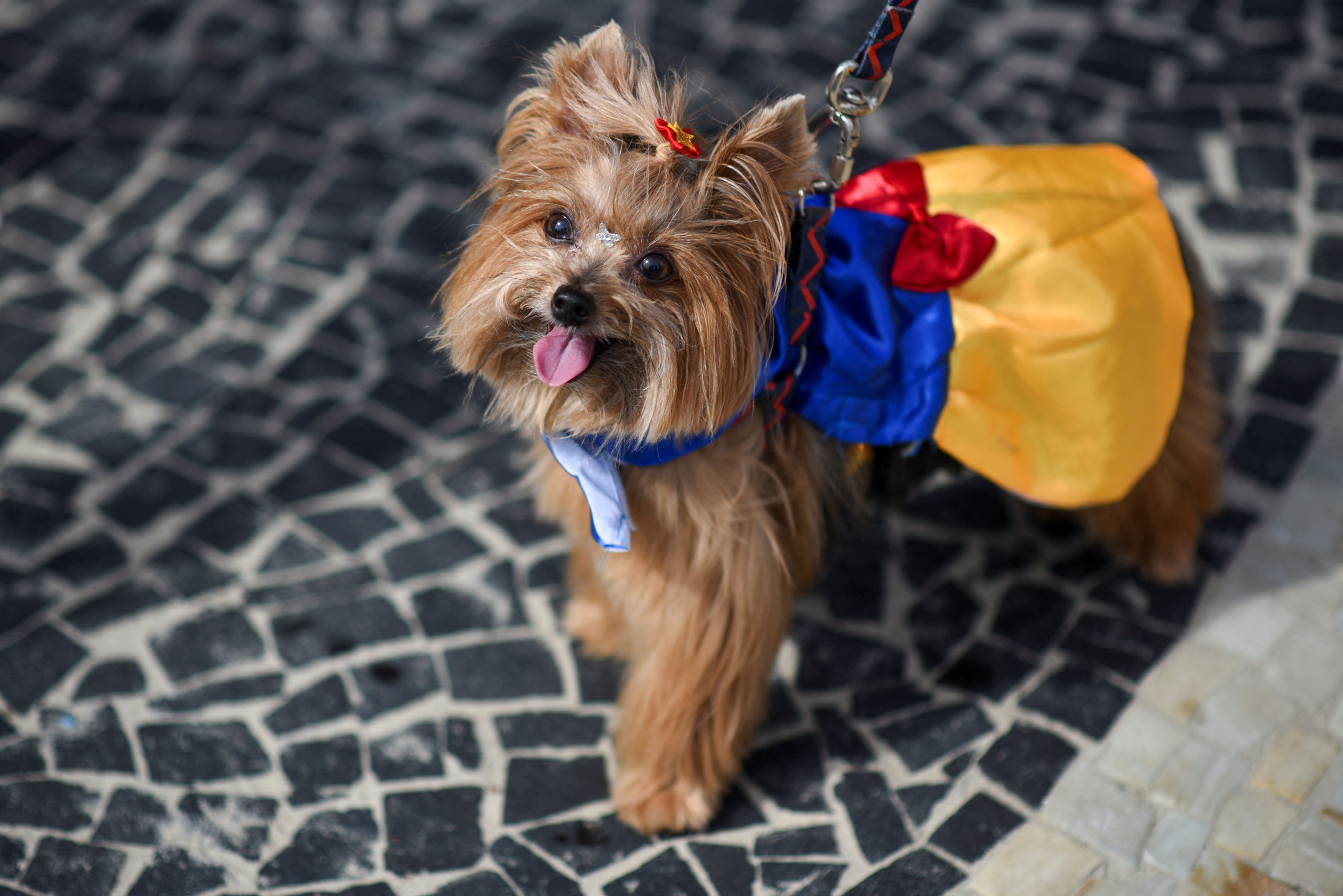 A dog wears a costume at the “Blocao” dog carnival parade, during pre-carnival festivities in Rio de Janeiro, Brazil, on February 4, 2024. (Photo by Tita Barros/Reuters)