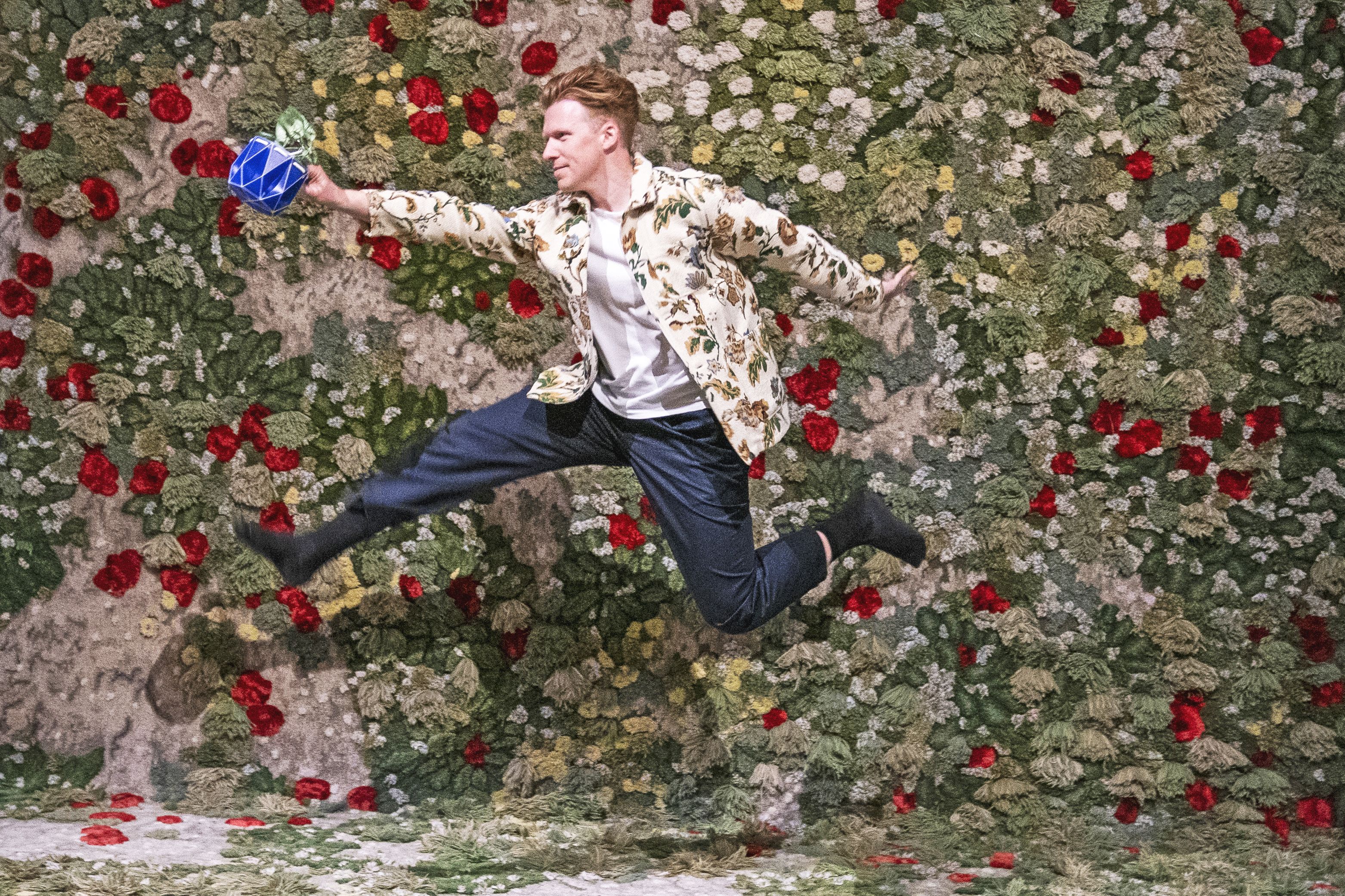Designer Andrew Flynn, co-founder of Potr, with one of his flat-pack origami plant pots made from post-industrial waste and fishing nets, explores “Meadow'” a large-scale interactive textile garden created by artist Alexandra Kehayoglou, at the preview for the new Garden Futures: Designing with Nature exhibition at the V&A in Dundee, UK on Thursday, May 15, 2025. (Photo by Jane Barlow/PA Wire)