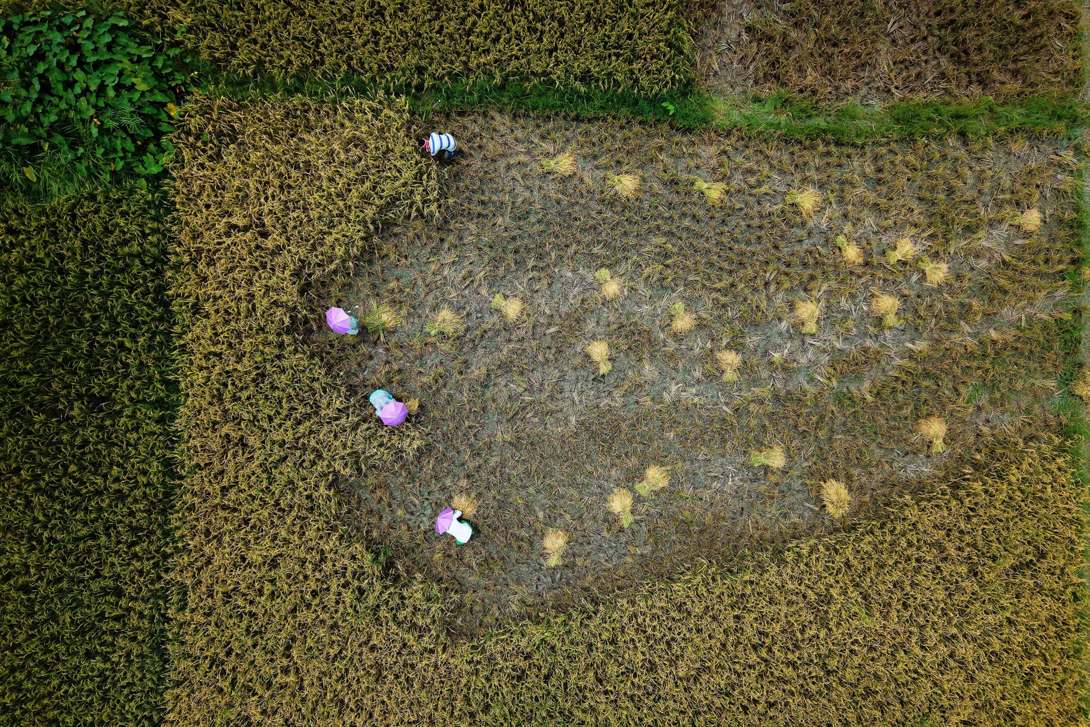 Farmers harvest rice crop in a paddy field on the outskirts of Guwahati, India, Saturday, May 24, 2025. (Photo by Anupam Nath/AP Photo)