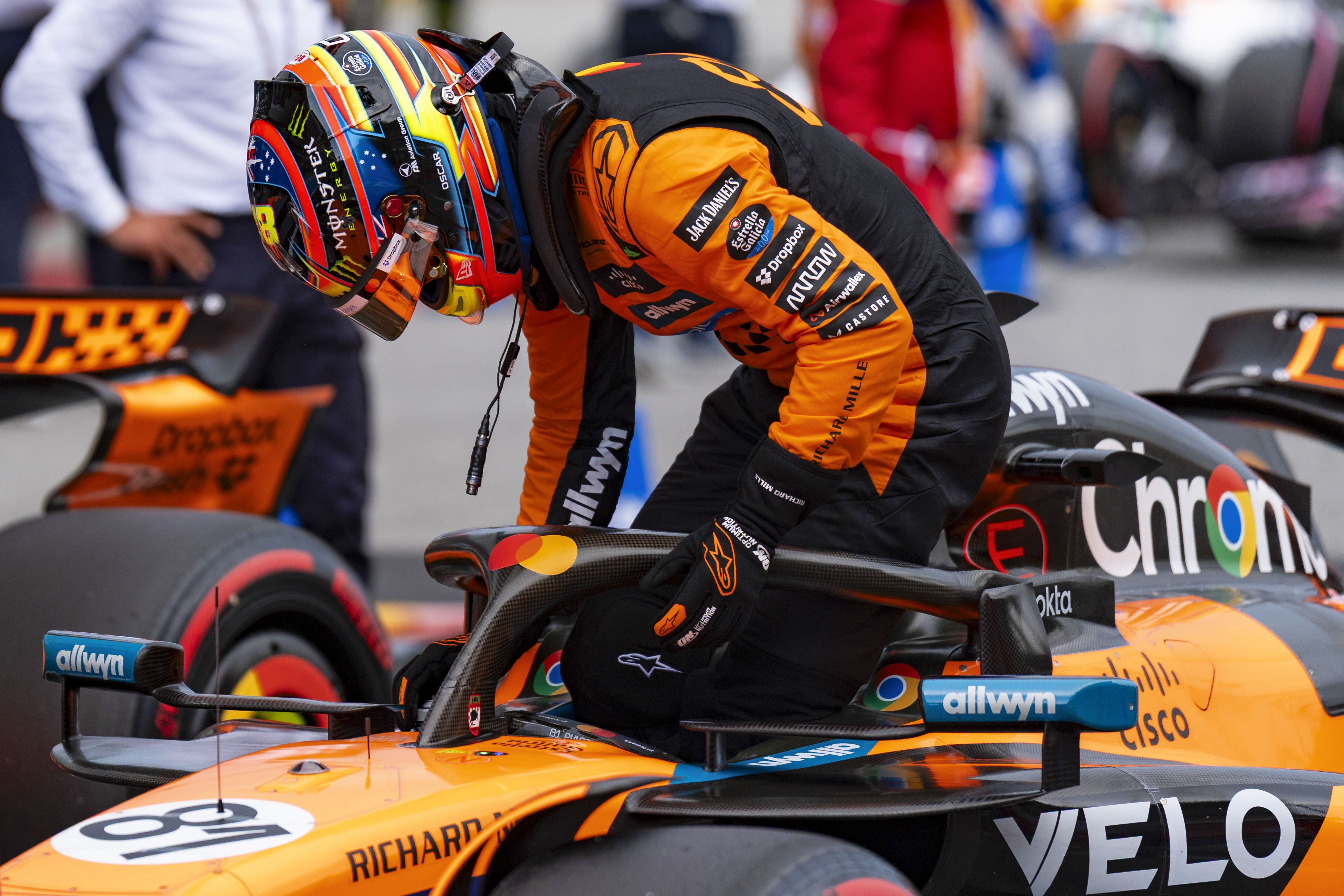 McLaren driver Oscar Piastri of Australia gets out of his car after winning the pole position at the end of the qualifying session for the Formula One Grand Prix of Spain at the Barcelona-Catalunya Circuit, in Montmelo, Barcelona, Spain, 31 May 2025. (Photo by Siu Wu/EPA/EFE)