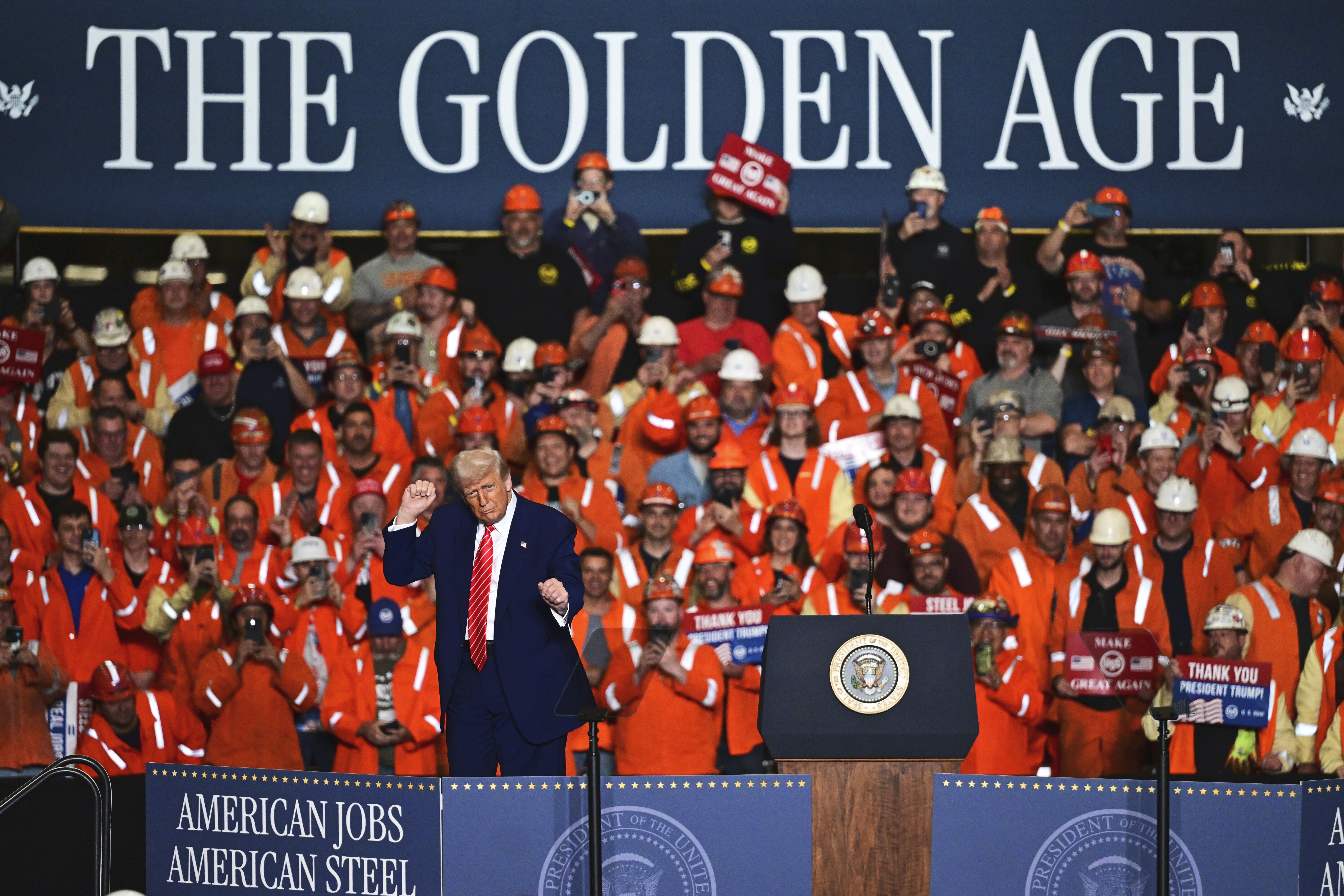 President Donald Trump dances after speaking at the U.S. Steel Mon Valley Works-Irvin plant, Friday, May 30, 2025, in West Mifflin, Pa. (Photo by David Dermer/AP Photo)