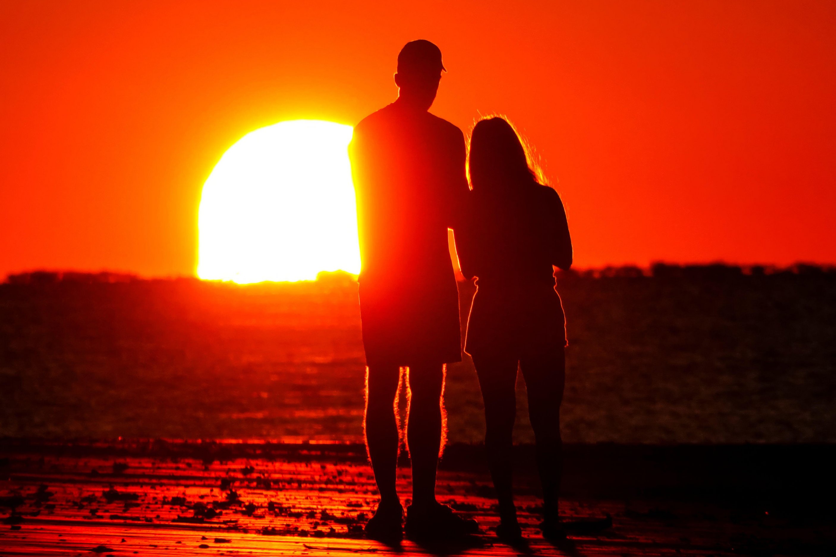 A couple are silhouetted by the rising sun as they stop to watch the sunrise at Wild Dunes beach, May 31, 2025 in Isle of Palms, South Carolina. (Photo by Richard Ellis/Alamy Live News)