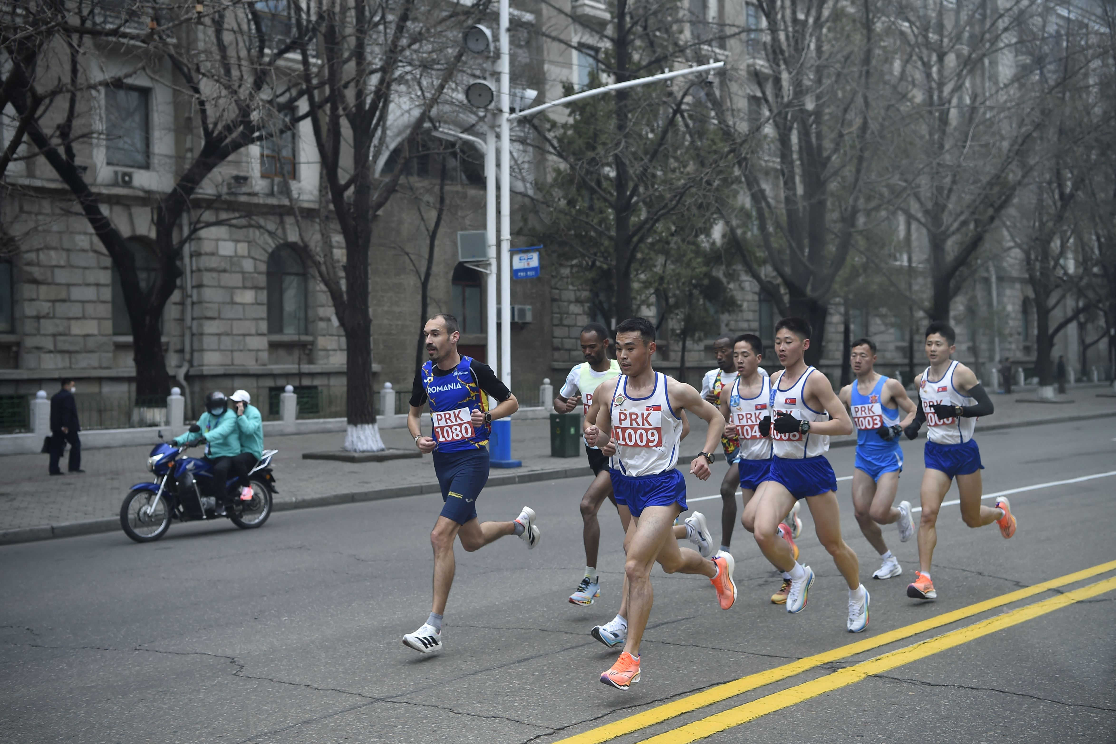 Participants take part in the 31st Pyongyang International Marathon in Pyongyang on April 6, 2025, as part of celebrations marking the birth of North Korea's founding leader Kim Il Sung in 1912. (Photo by Kim Won Jin/AFP Photo)