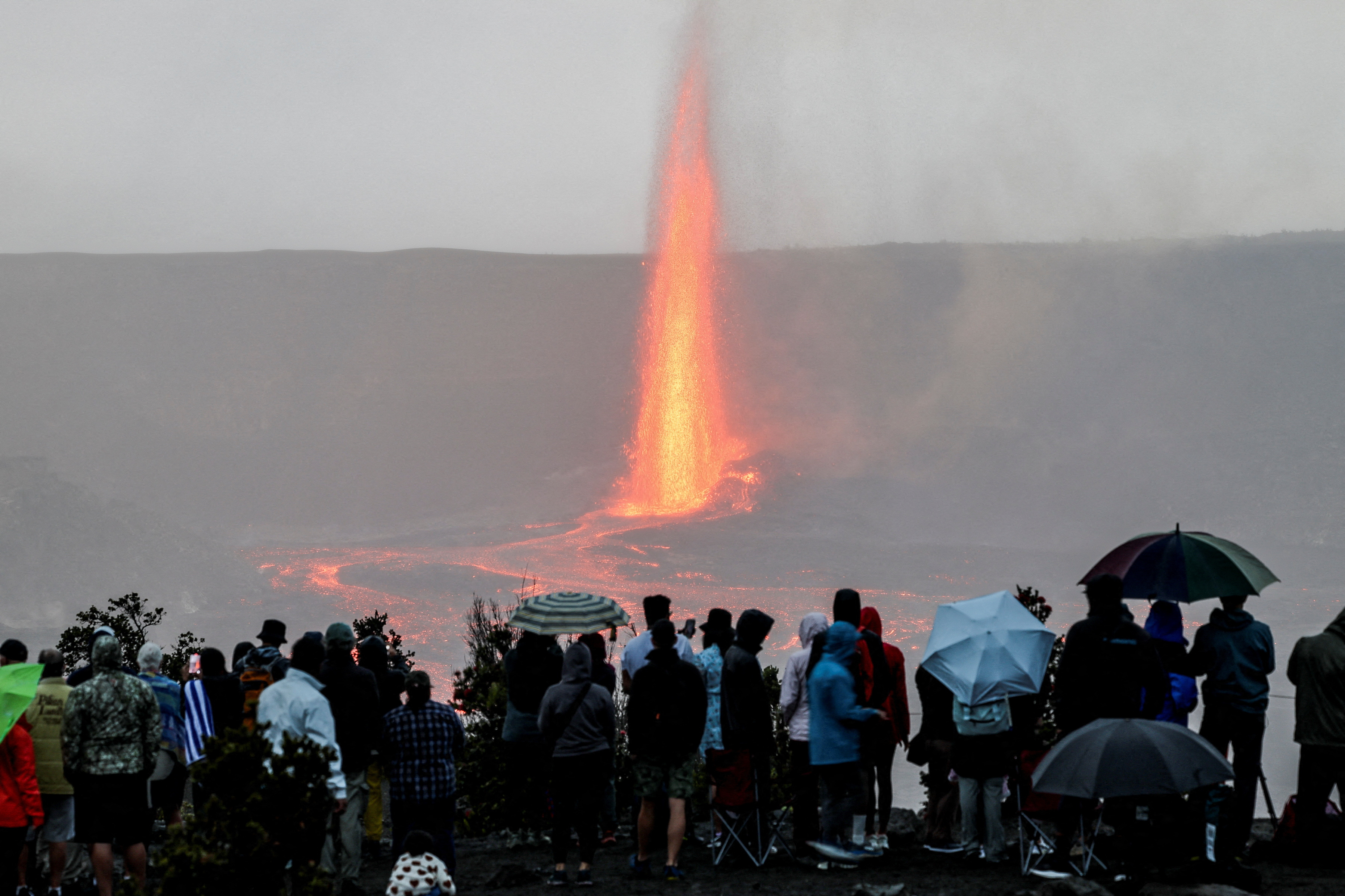 Lava erupts from Halema'uma'u crater within the summit caldera Kaluapele, at the Kilauea volcano in Hawaii, U.S. March 26, 2025. (Photo by Marco Garcia/Reuters)