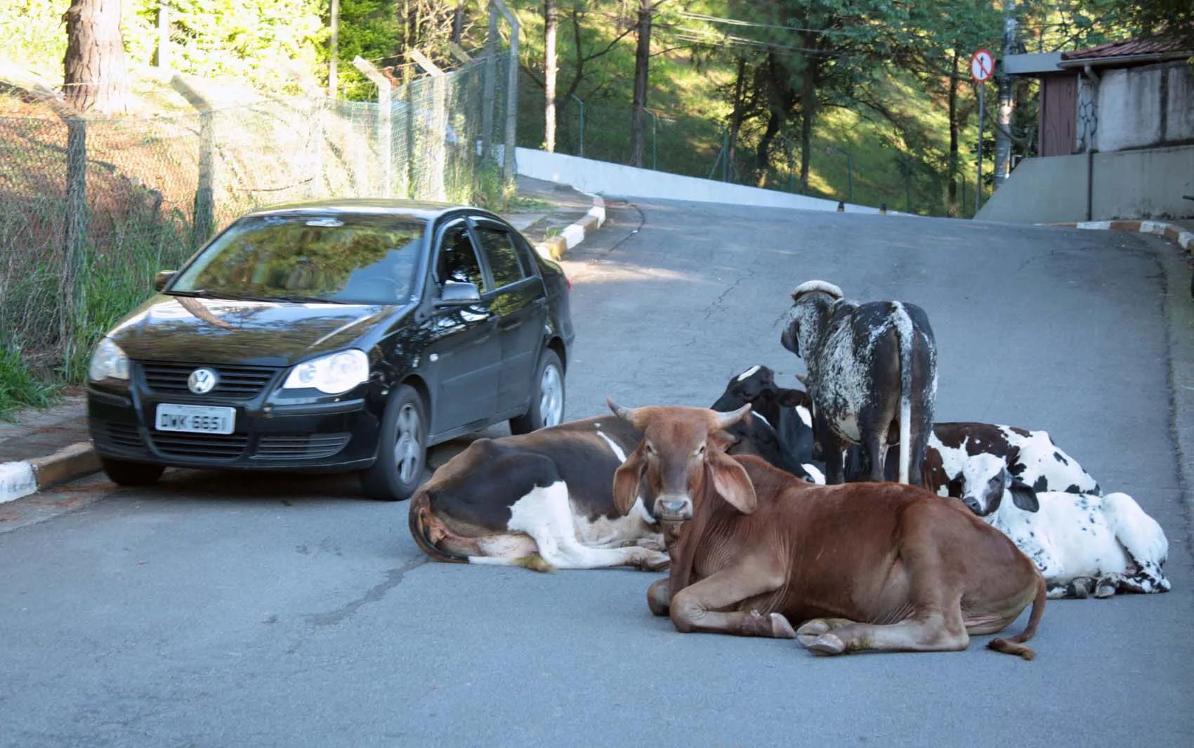 Cows disrupt traffic on Avenida Guido Caloi, in São Paulo, on March 22, 2013. Animals were left for about three hours on the track. (Photo by Luiz Claudio Barbosa/Futura Press/Estadão Conteúdo)
