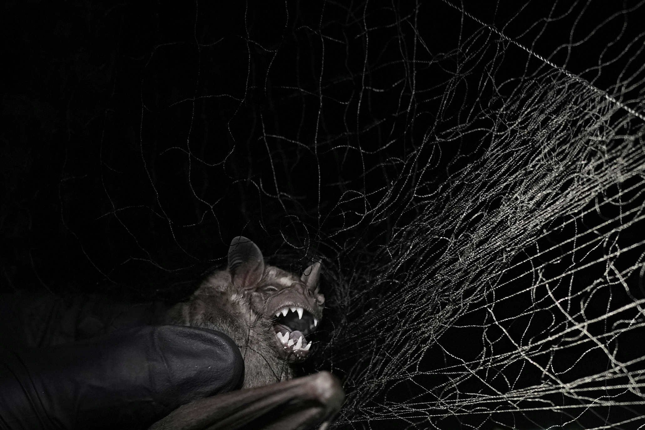 A scientist from the Smithsonian Tropical Research Institute captures a bat for research in Gamboa, Panama, Sunday, June 1, 2025. (Photo by Matias Delacroix/AP Photo)