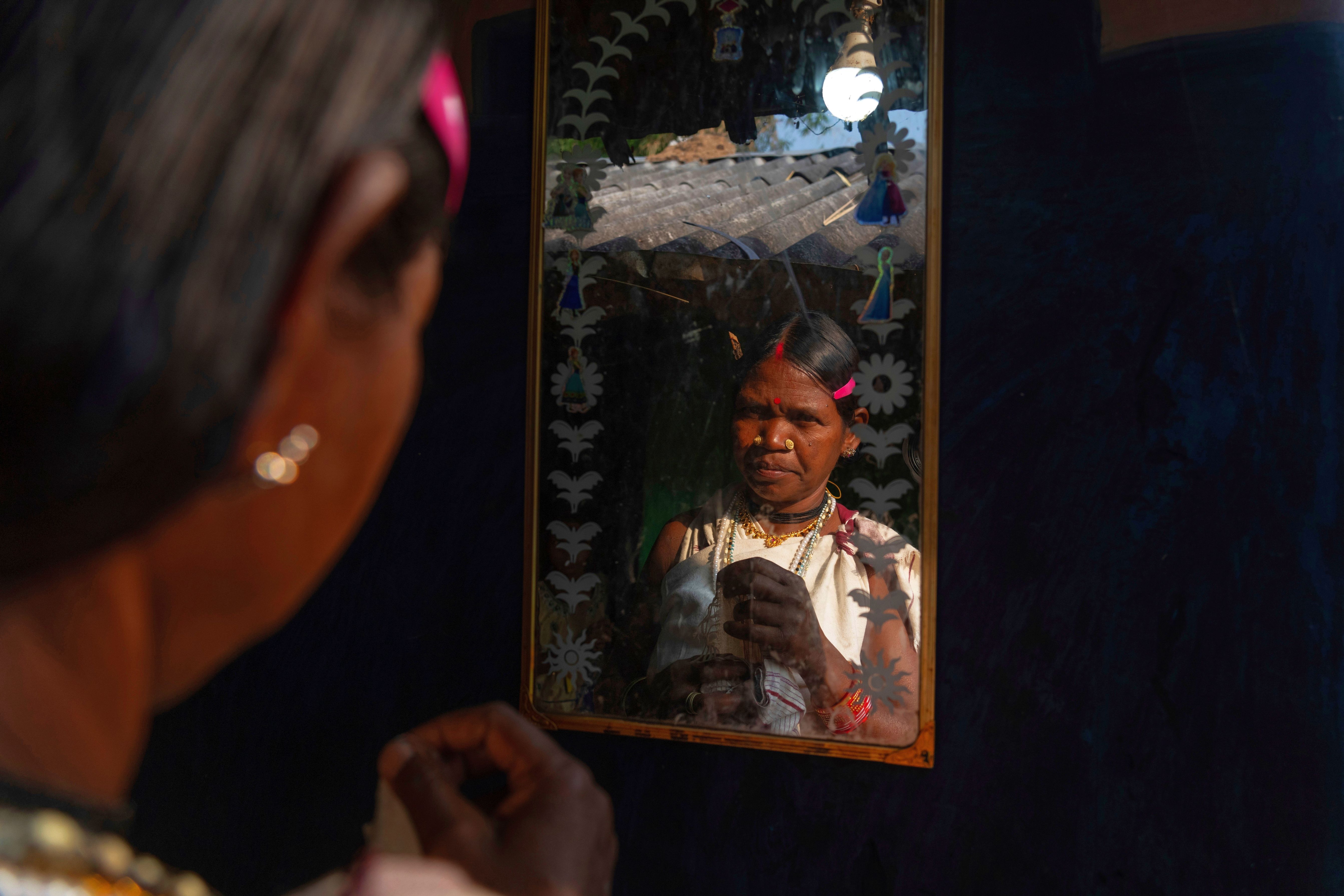 A woman, from the Durua Indigenous community, prepares to take part in the Chaitra Parab festival, a monthlong harvest celebration, in Hatipakna village, Koraput district, in India's eastern state of Odisha, Thursday, April 17, 2025. (Photo by Rafiq Maqbool/AP Photo)