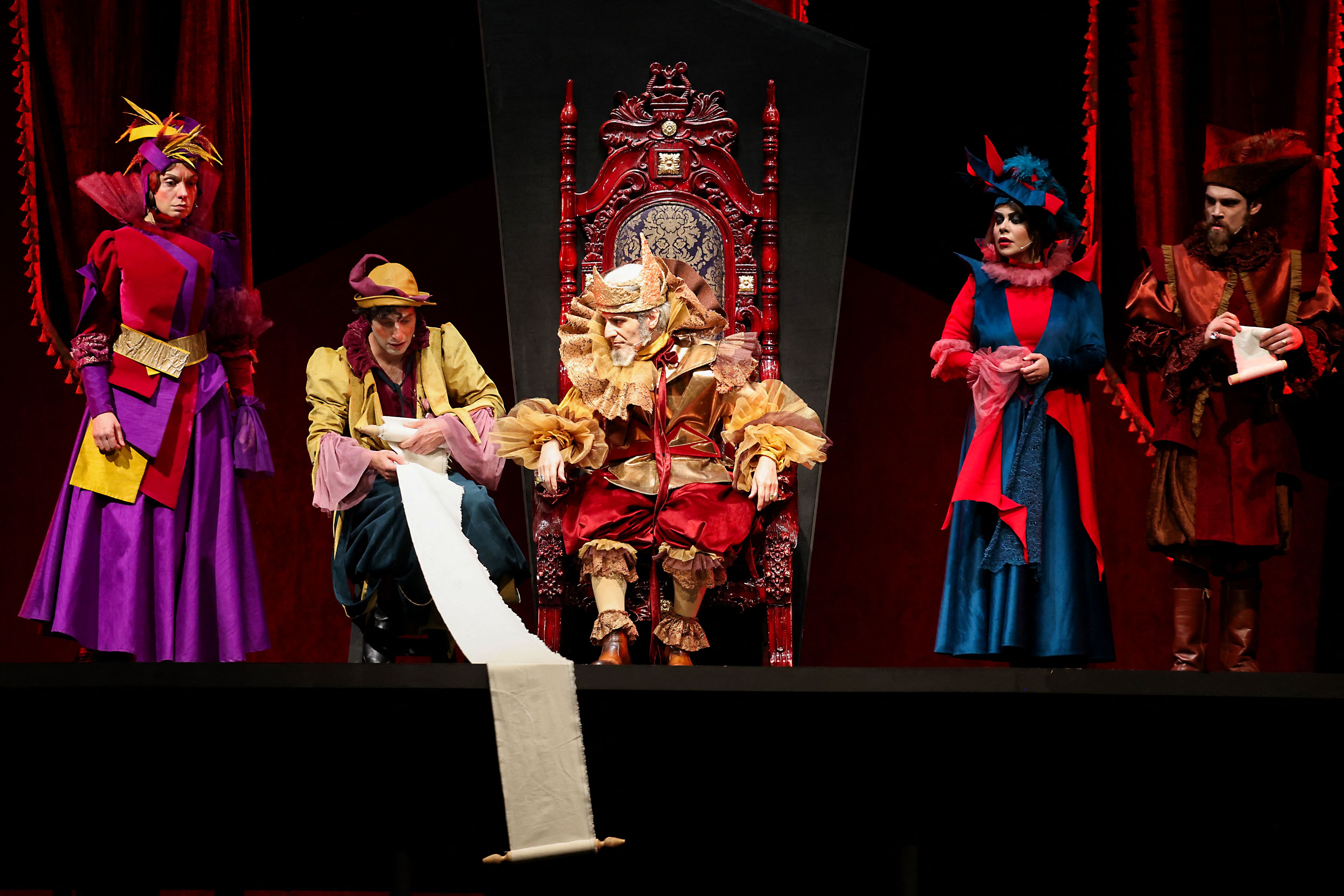Actors perform during a presentation of William Shakespeare's “King Lear”, directed by Iranian actress and director Elika Abdolrazzaghi, at Tehran's Shahr Theatre, on May 21, 2025. (Photo by Atta Kenare/AFP Photo)