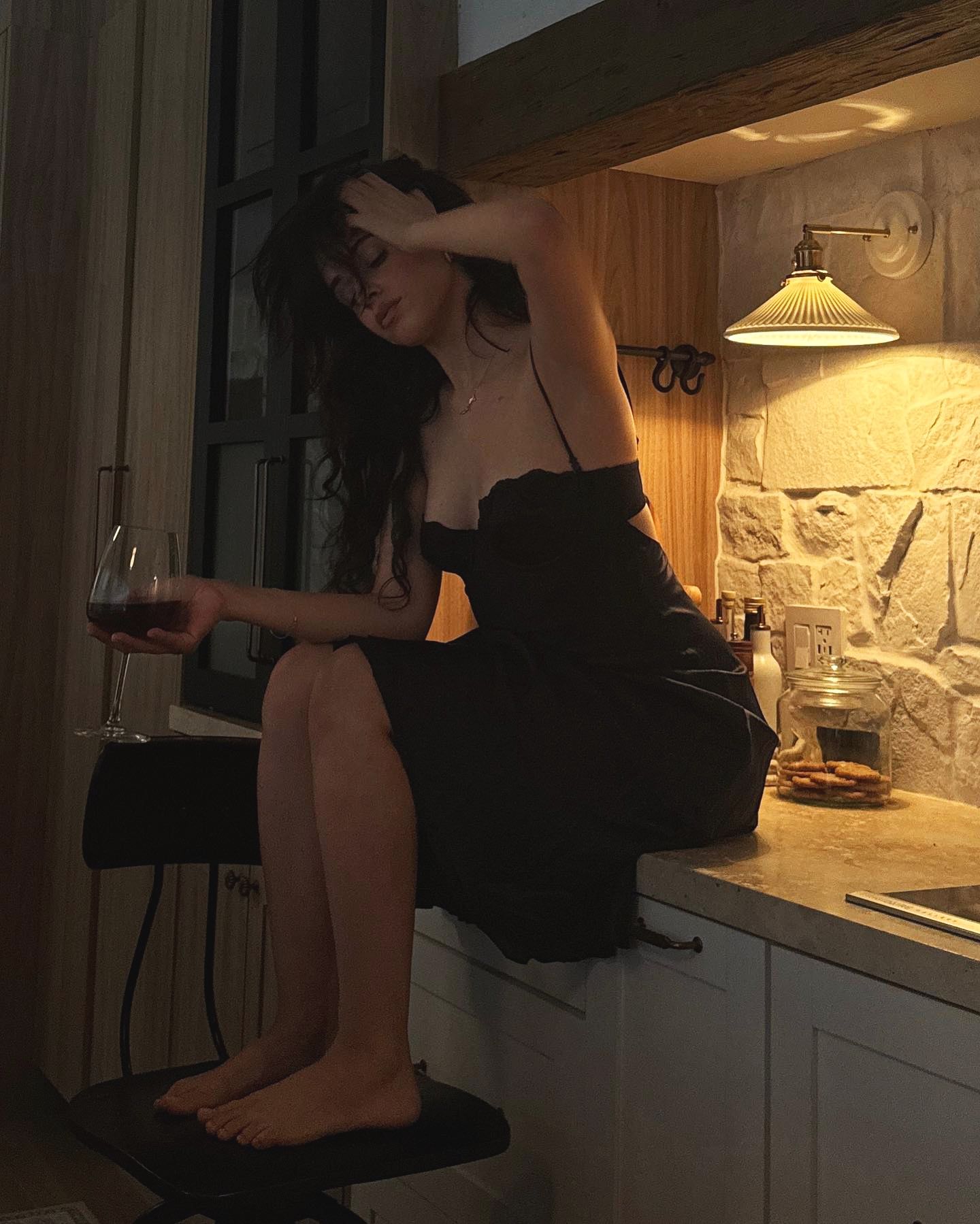 American singer-songwriter Camila Cabello sips on a glass of wine while lounging on her countertop in the last decade of May 2025. (Photo by camila_cabello/Instagram)
