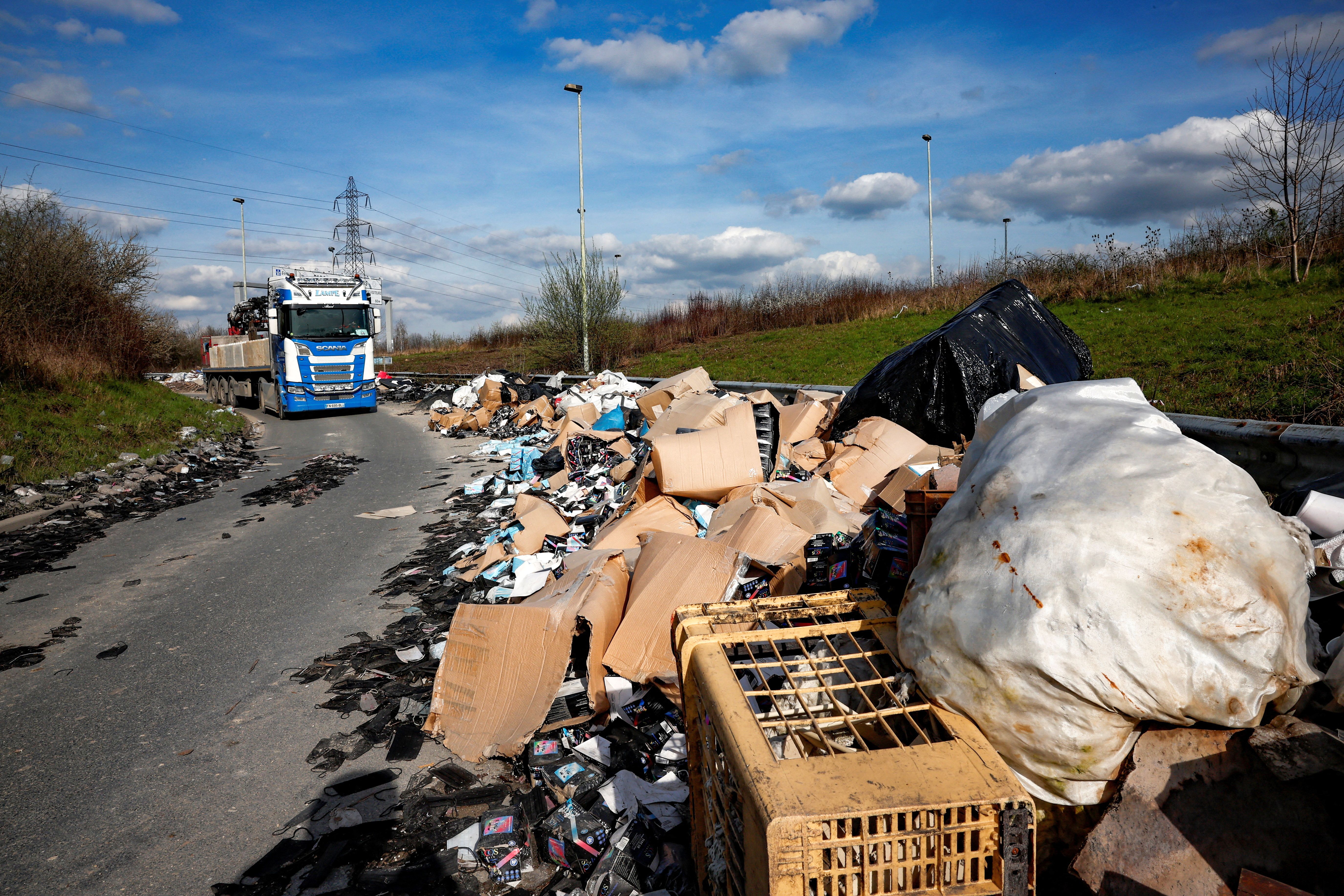 450 tonnes of waste are piled up on a slip road of the A104 motorway, close to a site of the Paris 2024 Olympic and Paralympic Games, in Villepinte, near Paris, France, on March 19, 2024. (Photo by Benoit Tessier/Reuters)