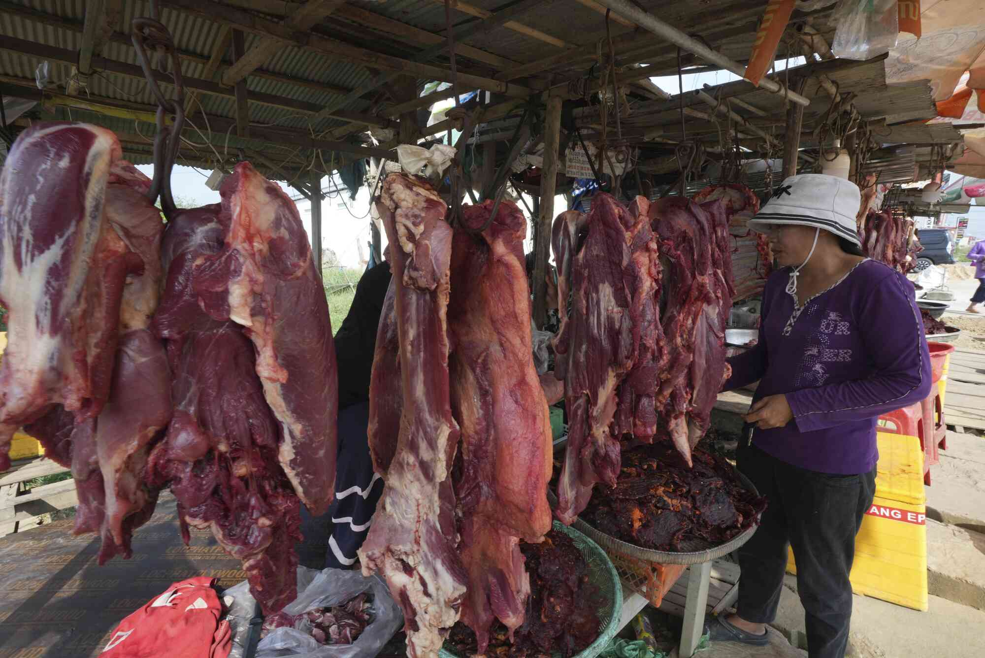 A villager buys beef at the roadside outside Phnom Penh Cambodia, Saturday, November 16, 2024. (Photo by Heng Sinith/AP Photo)