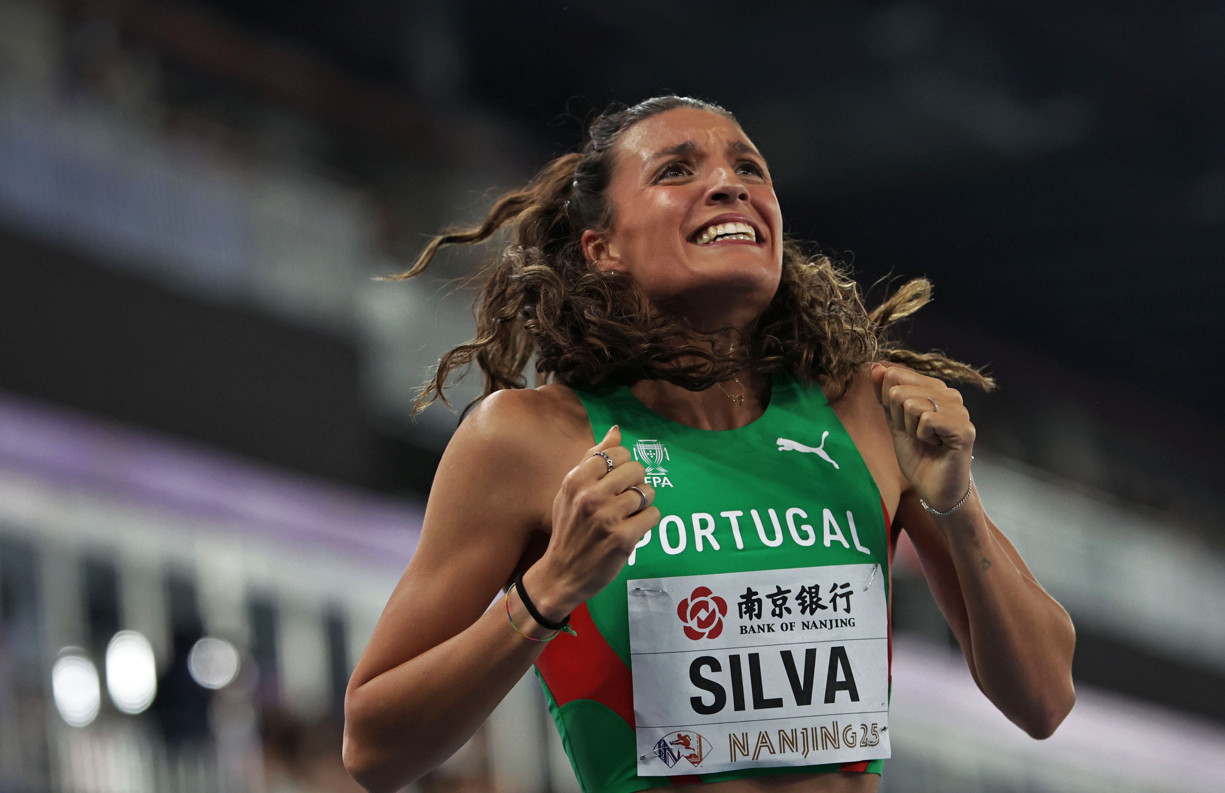 Patricia Silva of Portugal celebrates finishing third in the Women's 800m at the World Athletics Indoor Championships in Nanjing, China, 23 March 2025. (Photo by Andres Martinez Casares/EPA)
