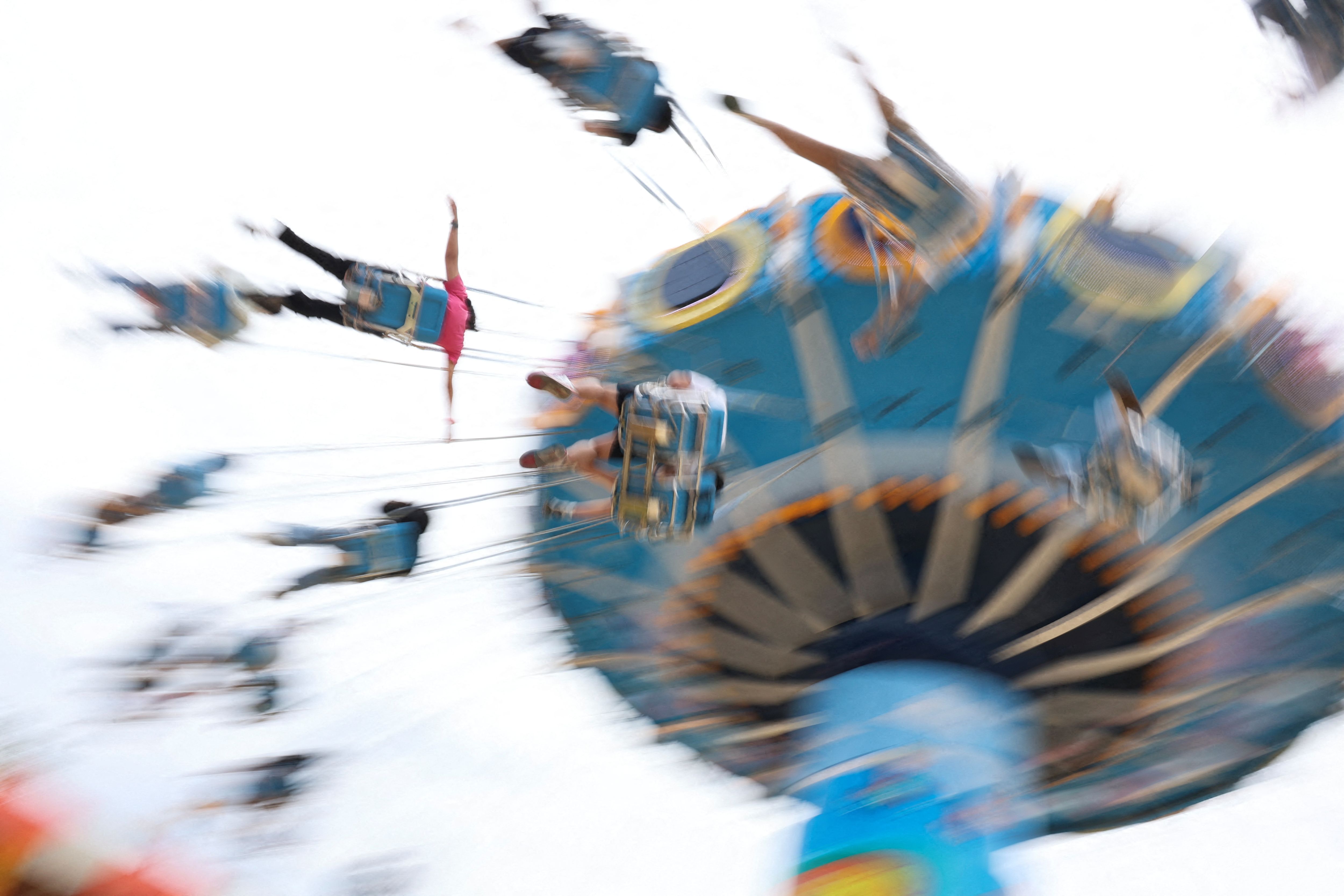 People ride on flying chairs while visiting Legoland Shanghai Resort for the pre-opening, during a media tour ahead of the theme park’s opening set on July 5, in Shanghai, China on June 20, 2025. (Photo by Go Nakamura/Reuters)