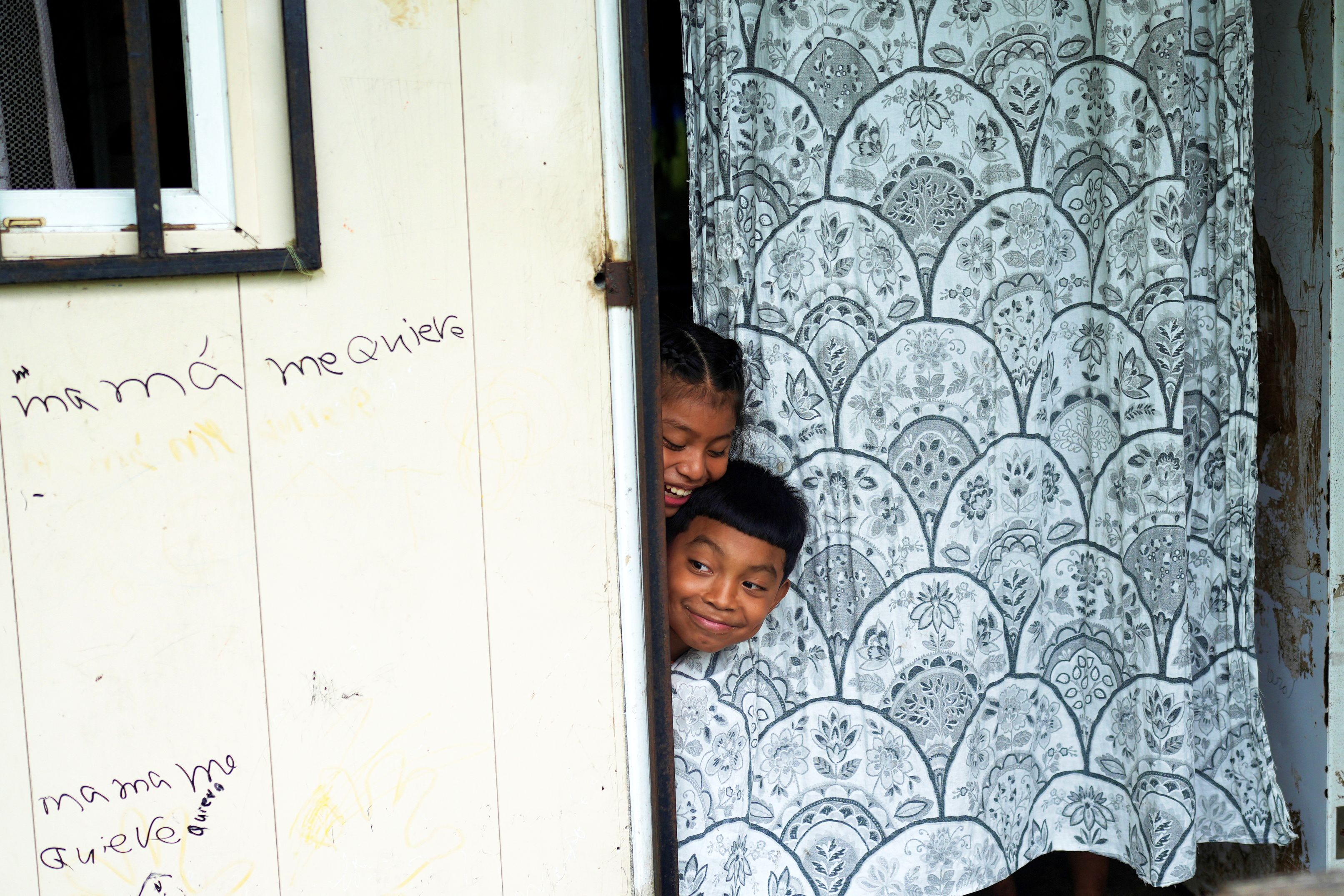 Siblings Alicia and Omar Rodriguez, children of daily workers who have been out of work for four weeks, play at home, as Chiquita Panama lays off some 5,000 of its daily workers out of a total of 6,500 employed nationwide, as per a source close to the company, after a strike began late April in the western province of Bocas del Toro, in Changuinola, Panama, on May 25, 2025. (Photo by Enea Lebrun/Reuters)