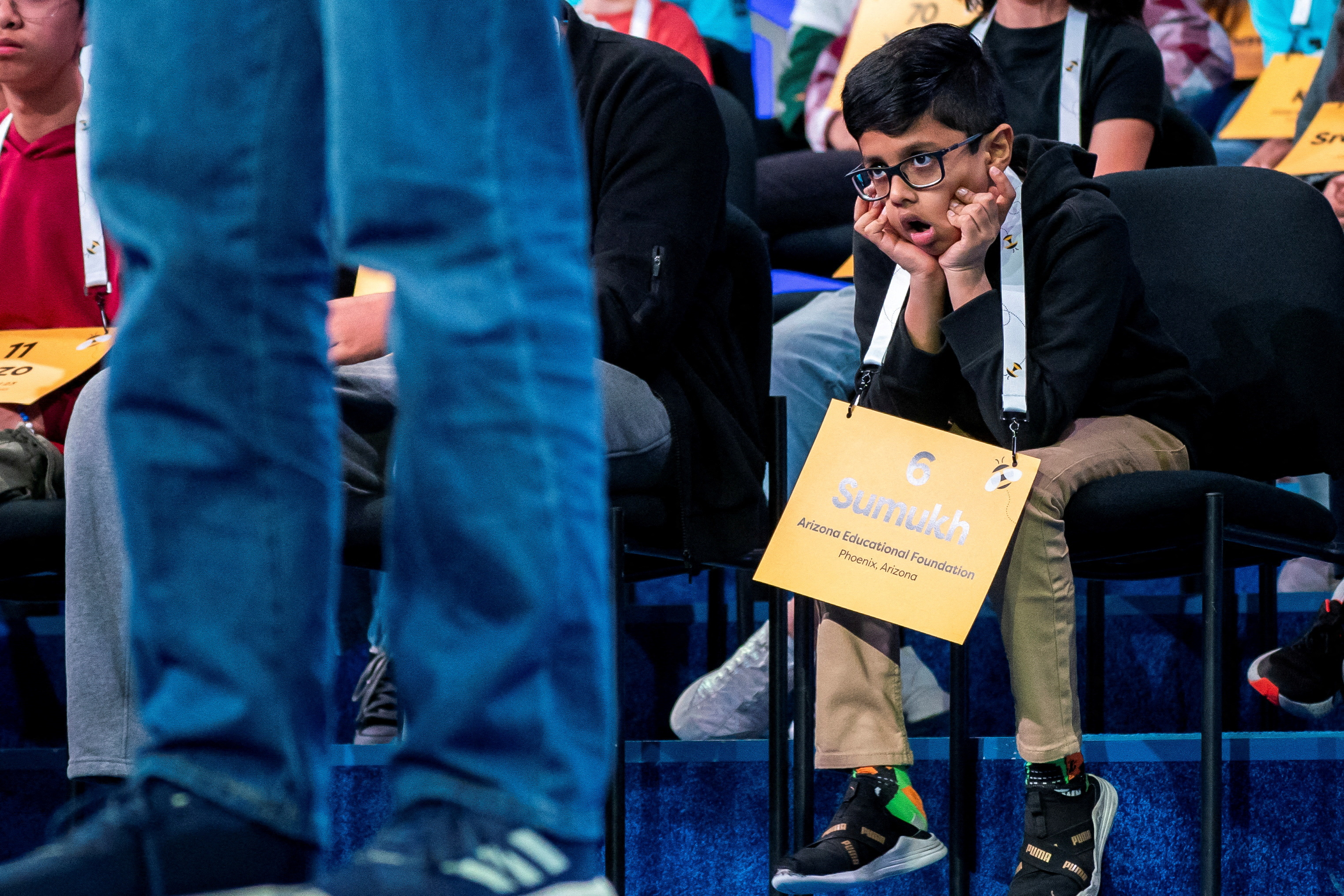 Sumukh Tirumalasetty, 10, of Phoenix, Arizona, reacts during the quarterfinals on May 28, 2025. (Photo by Nathan Howard/Reuters)