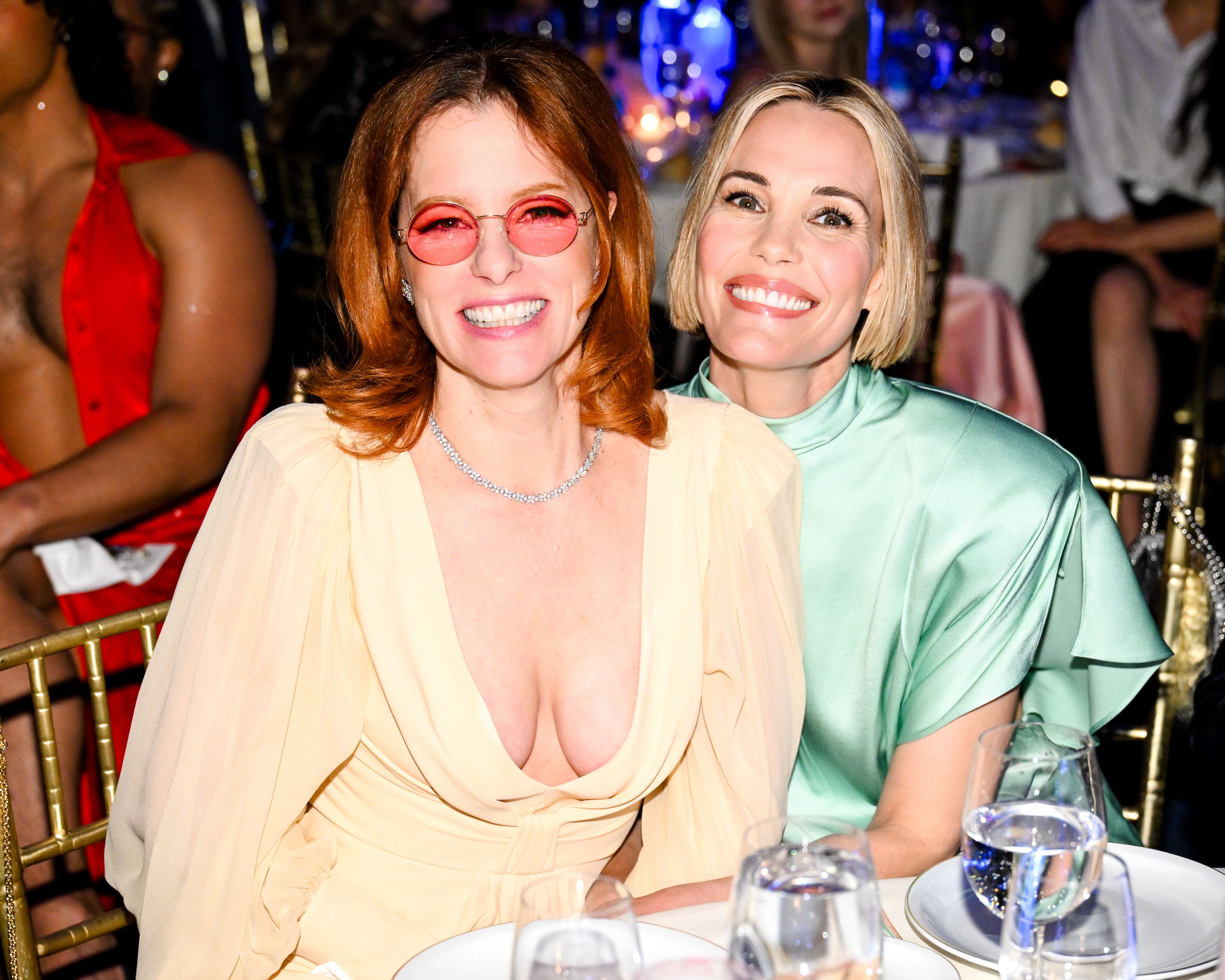 “The White Lotus” co-stars Parker Posey (left) and Leslie Bibb reunite at the Gotham TV Awards near Wall Street in NYC on June 2, 2025. (Photo by Zach Hilty/BFA.com/Rex Features/Shutterstock)