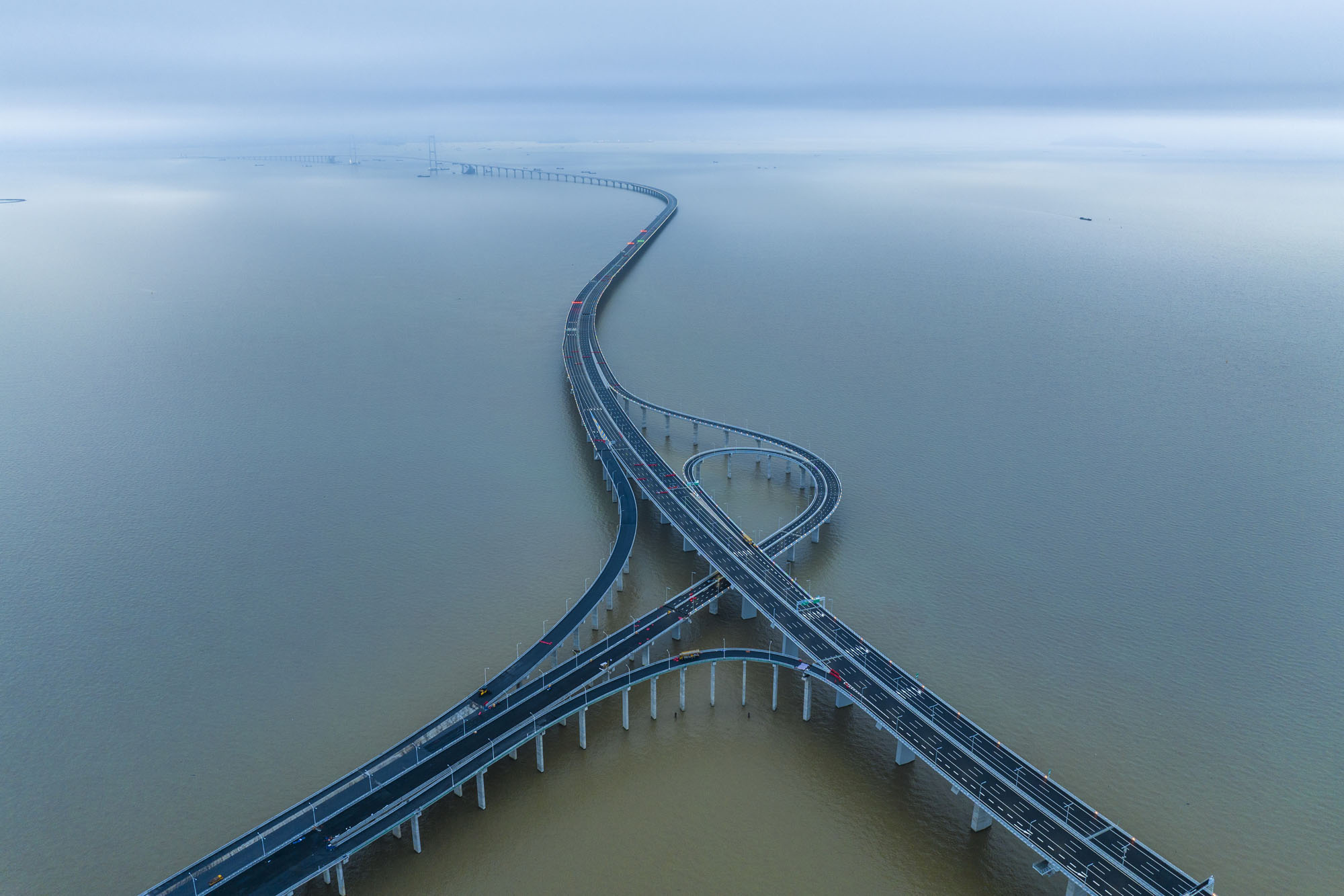 Aerial view of Shenzhen-Zhongshan bridge, a 24-kilometer bridge-island-tunnel project, on June 16, 2024 in Shenzhen, Guangdong Province of China. The Shenzhen-Zhongshan Link has passed construction acceptance, marking the successful completion of the world-class trans-sea cluster project after seven years of preparatory work and challenging construction, the Guangdong Transporation Group announced on Sunday. (Photo by VCG/VCG via Getty Images)